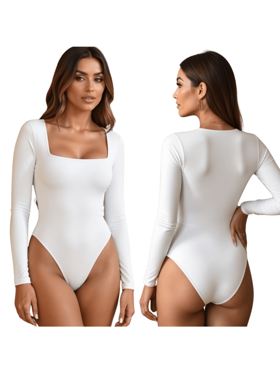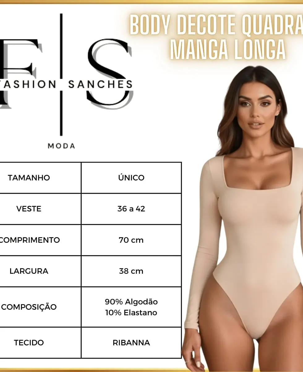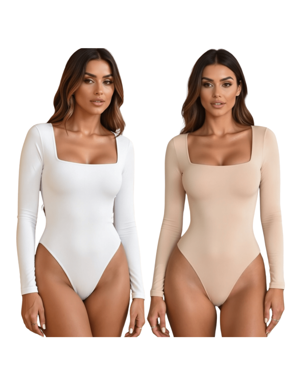 Kit 2 Body Feminino Decote Quadrado Manga Longa Suplex