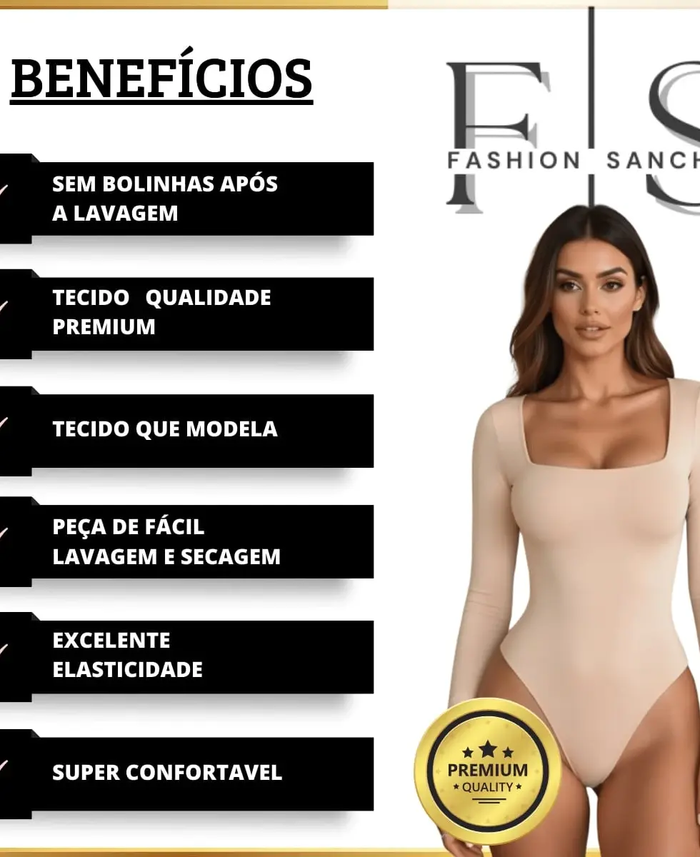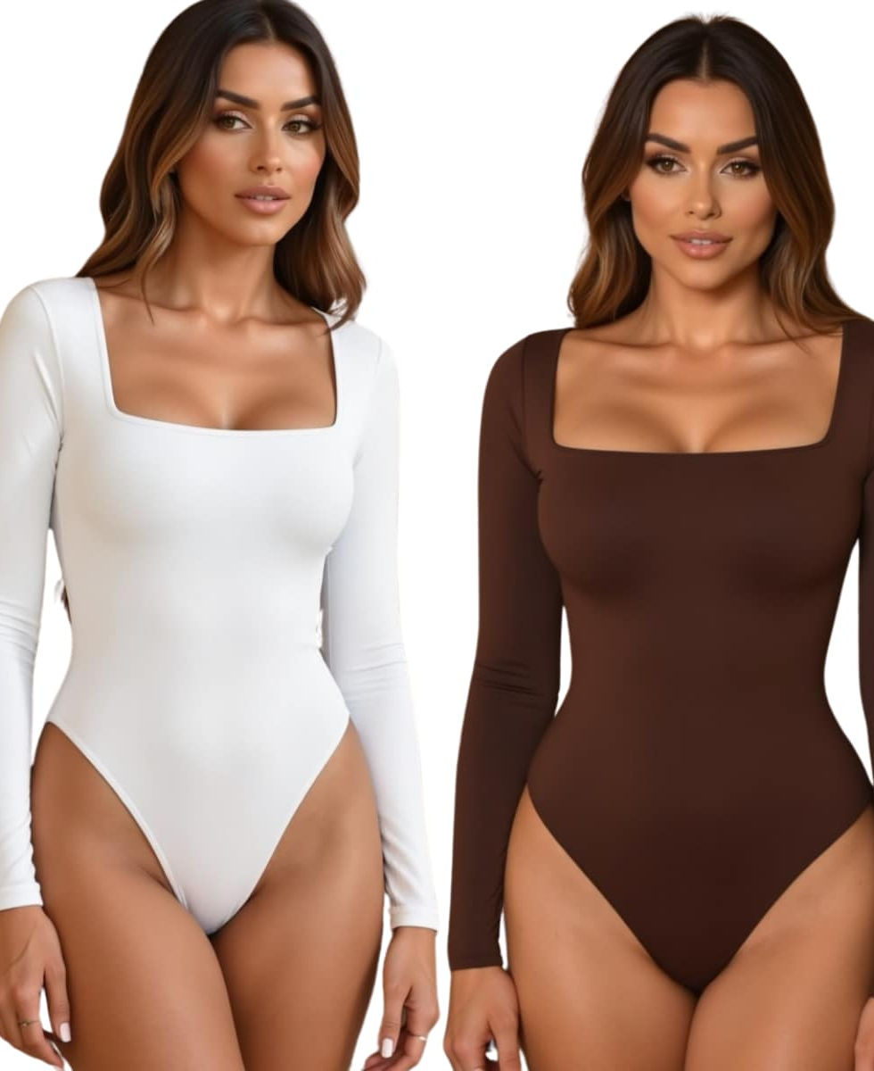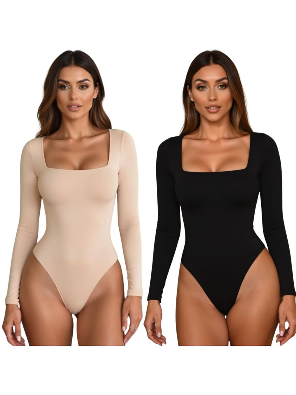 Kit 2 Body Feminino Decote Quadrado Manga Longa Suplex