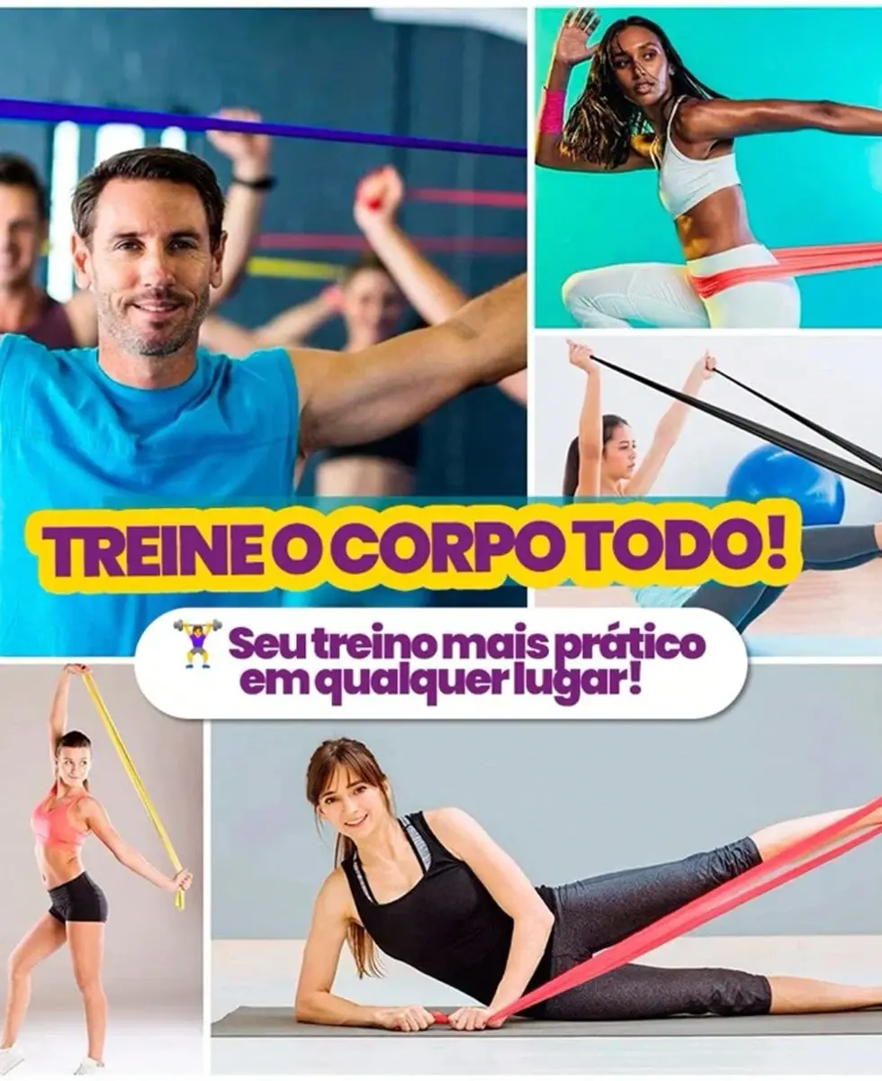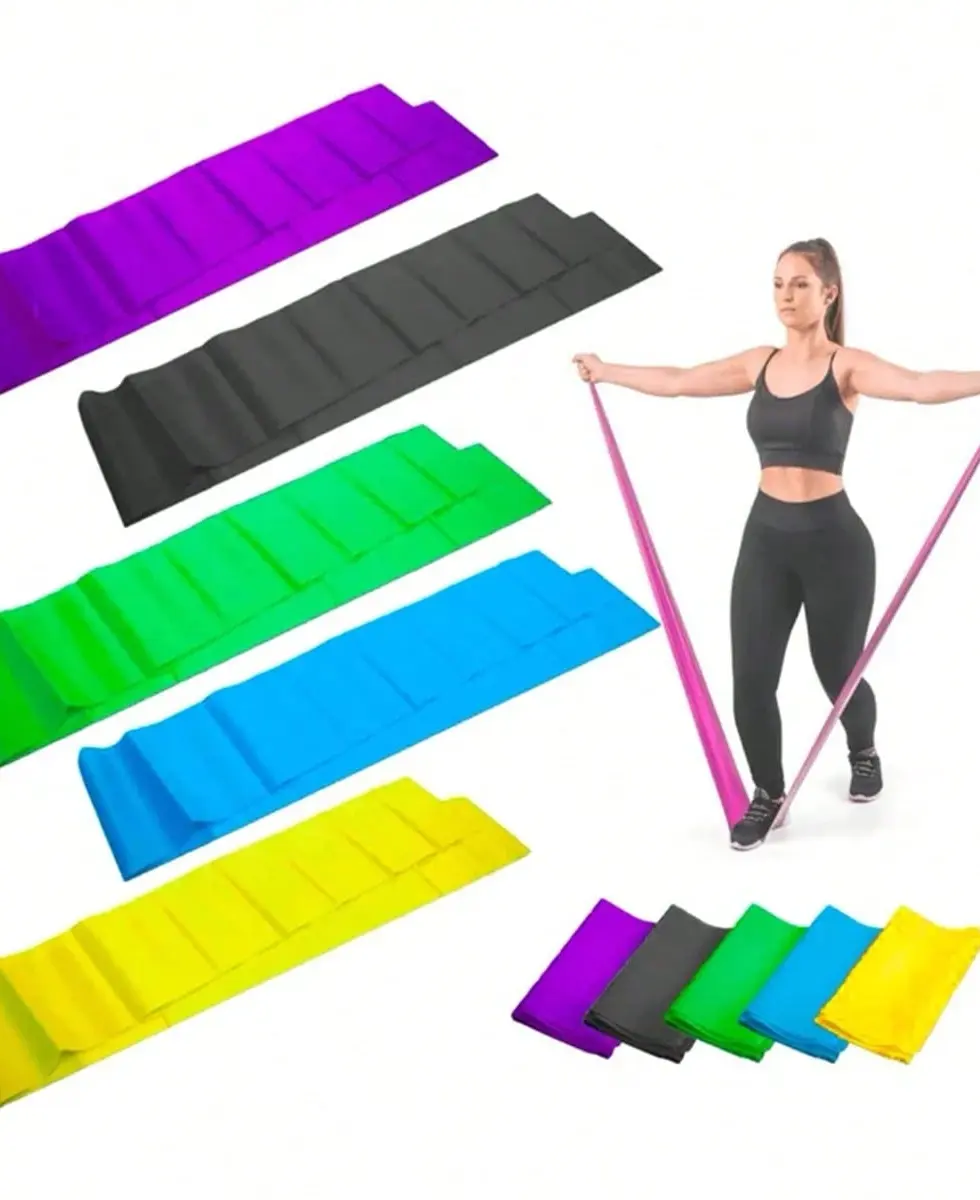Kit 5 Faixas Elásticas Exercício Treino Funcional em Casa Yoga e Musculação