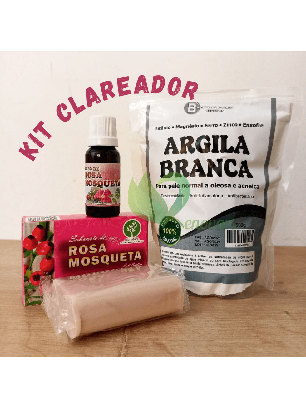 Kit CLAREADOR de PELE: Sabonete Rosa Mosqueta + Óleo Rosa de Mosqueta + Argila