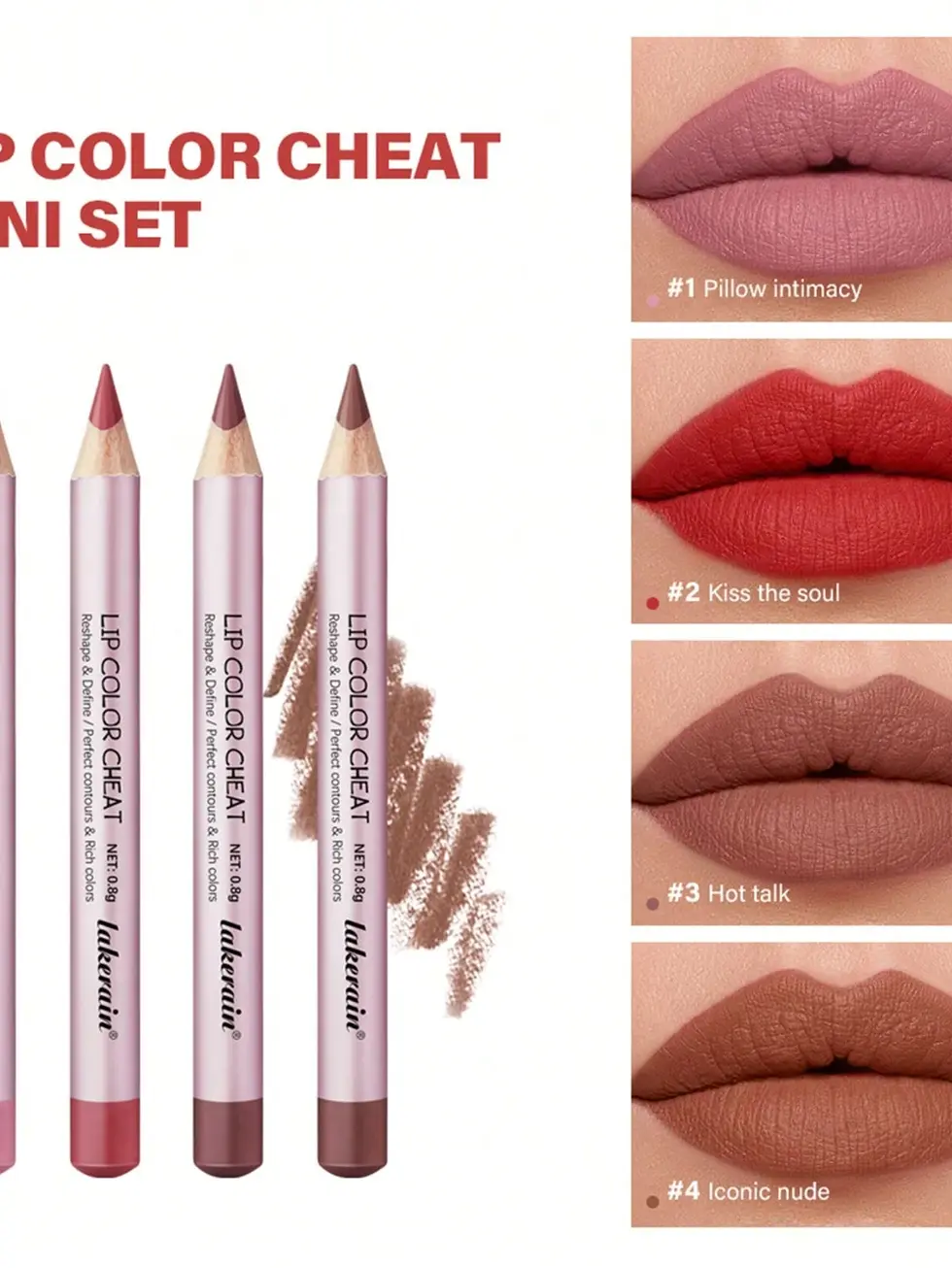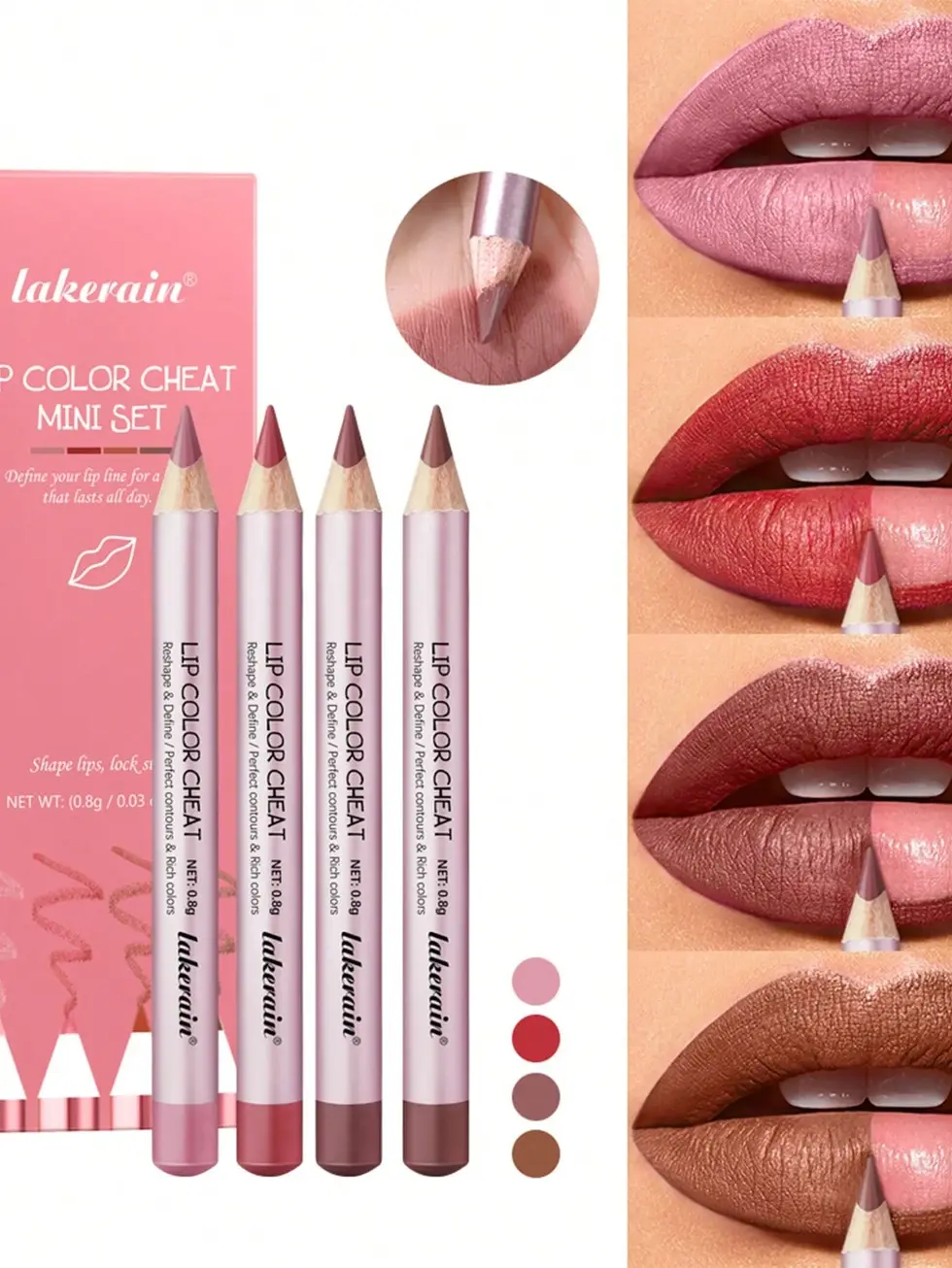 lakerain 4 peças/Conjunto Lápis Delineador de Lábios de Madeira Mini, Delineado