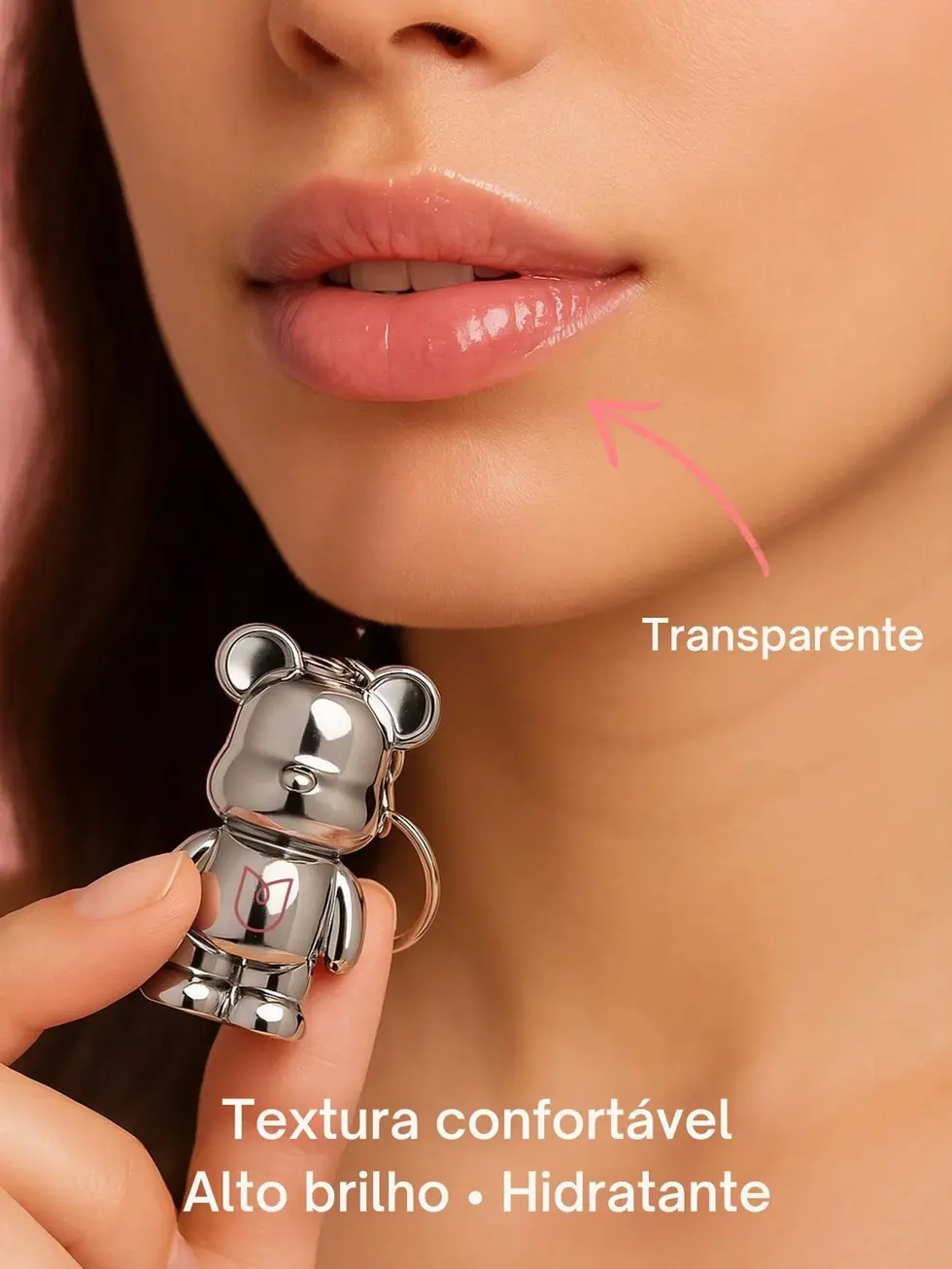 Lip Oil Metalic Bear Transparente Mia Make - Fofo com Chaveiro Brilho Hidratant