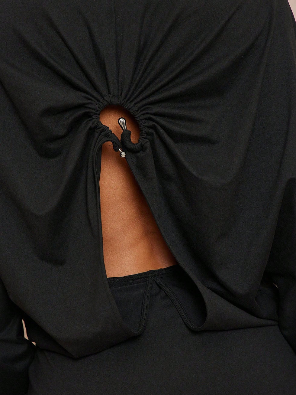 Lumalex Vestido Curto Bodycon com Gola Alta, Manga Farol e Costas Abertas, Fash
