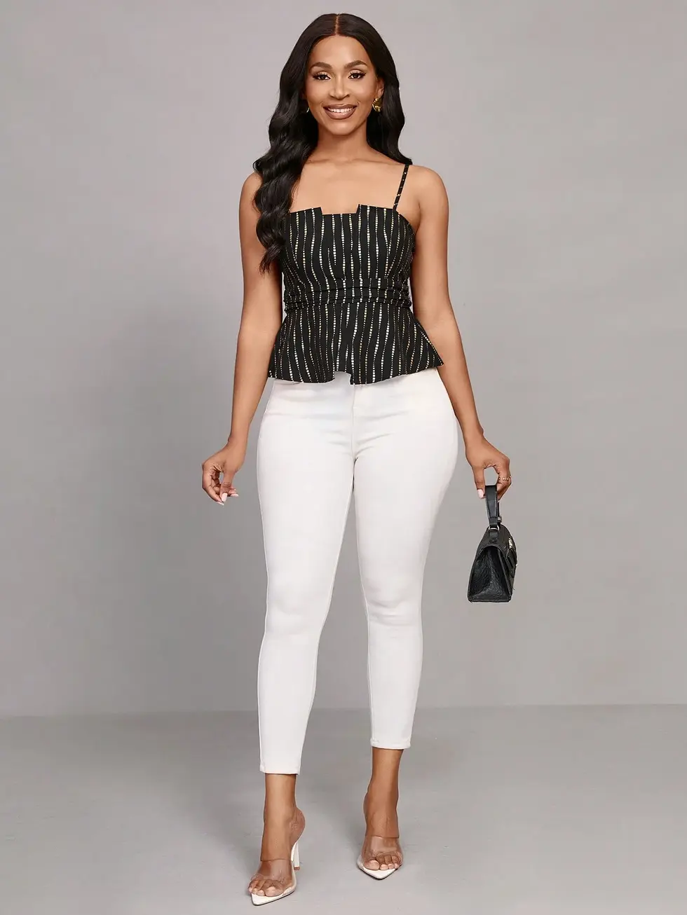 Lyxana Saia Suspensória Ajustável na Cintura com Estampa Dourada Elegante para