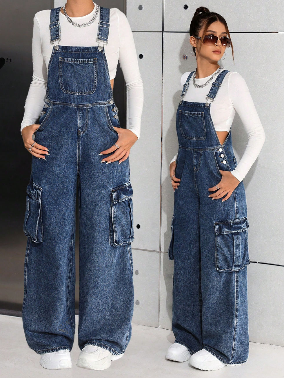 Macacão Denim Delavê Casual de Adolescente Estilo Y2K, Roupas de Menina para Ou