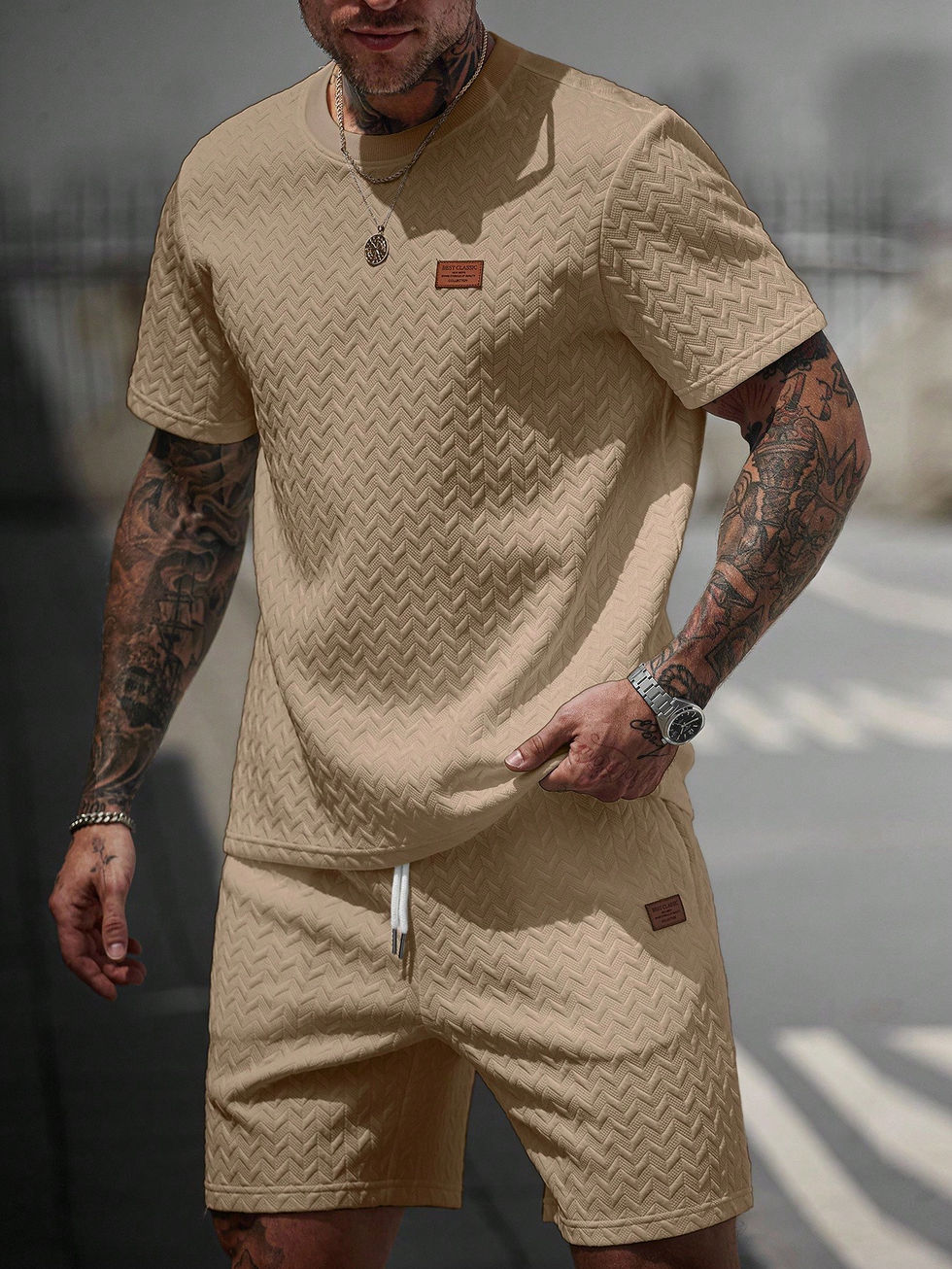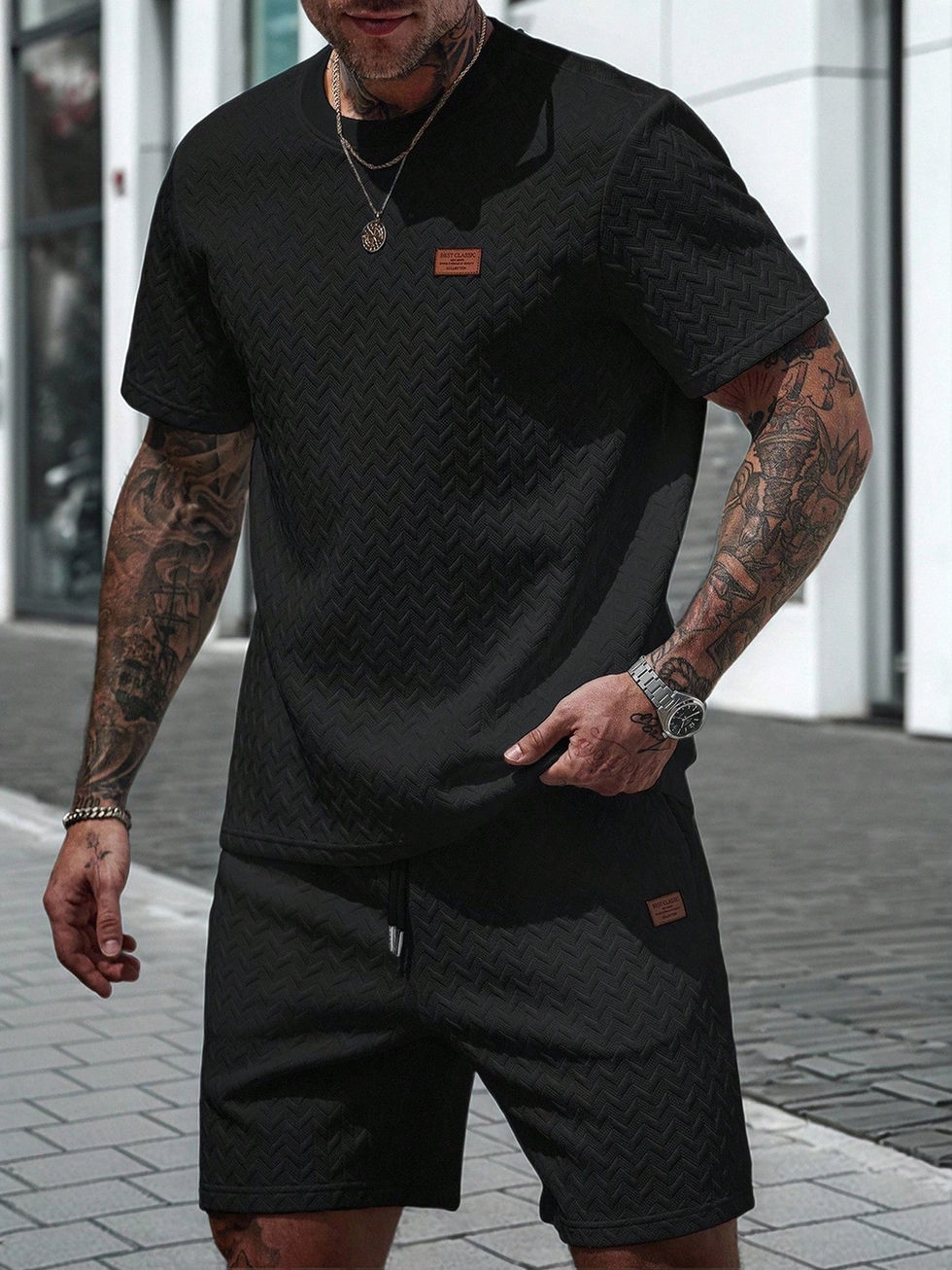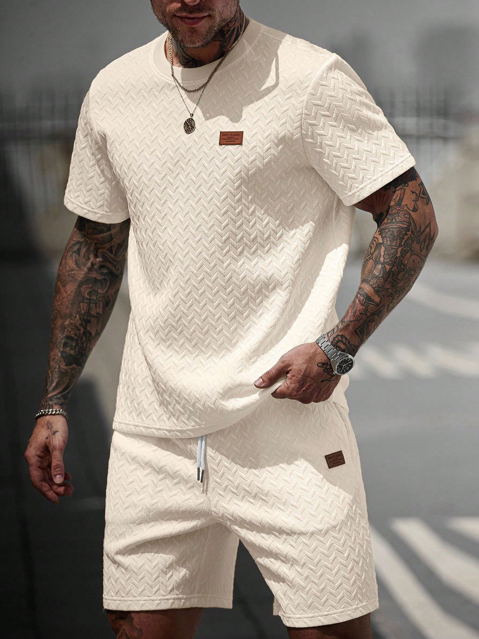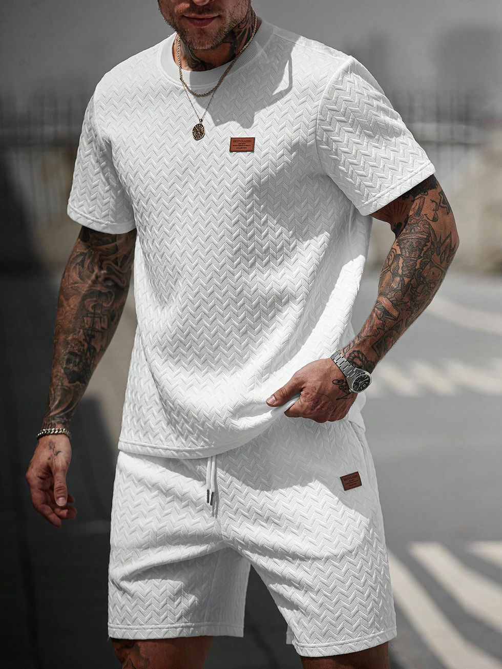Manfinity CasualCool Conjunto de Camiseta Canelada de Decote em V + Shorts com