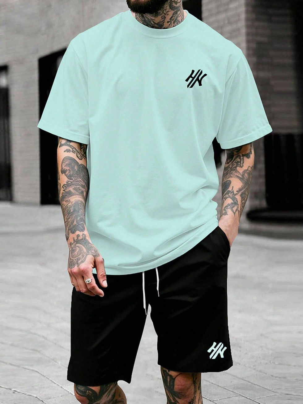 Manfinity CasualCool Conjunto de Camiseta de Manga Curta de Gola Redonda e Shor