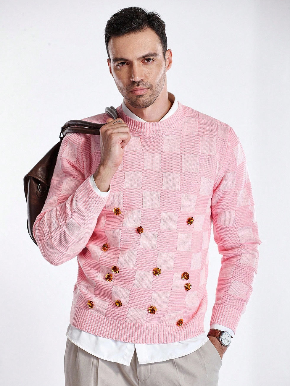 Manfinity CityGents Suéter de Tricô Estilo Blogger com Design Floral de Paetês