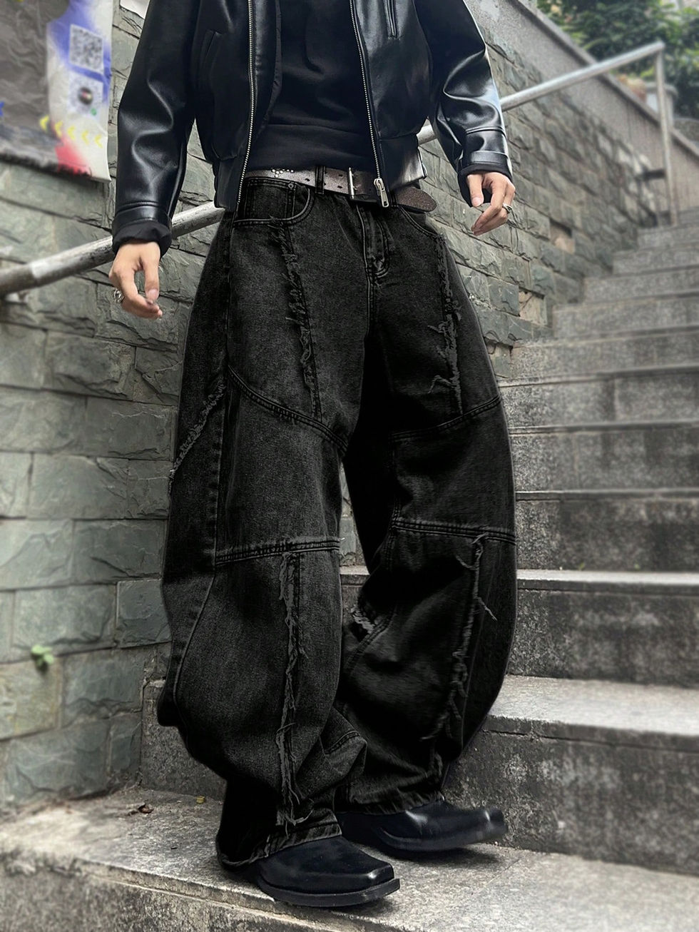 Manfinity EMRG Calça Denim Baggy Masculina Lavada com Barra Desfiada ASTRO
