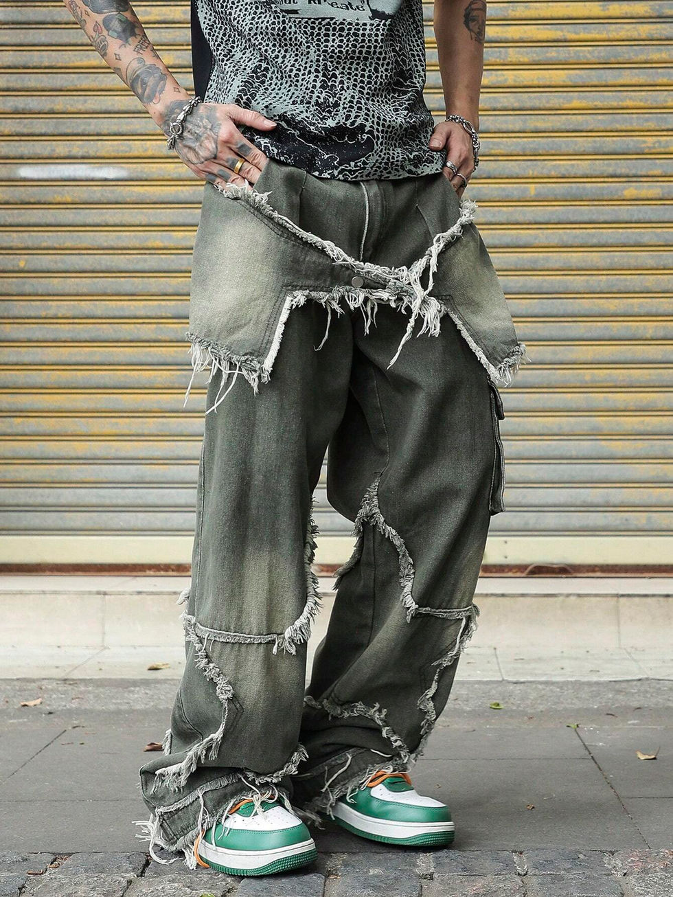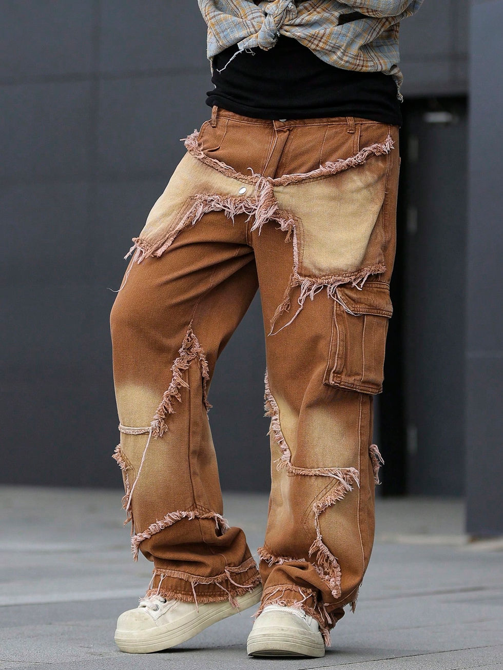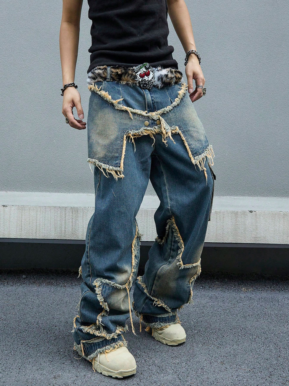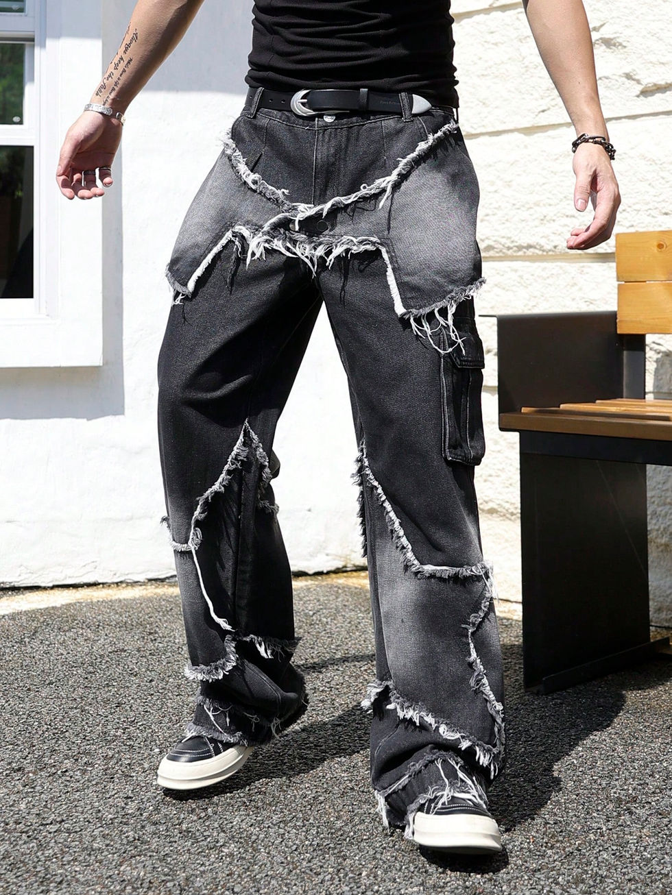 Manfinity EMRG Calça Denim Casual e Elegante para Homens, Denim Longo Largo Sim