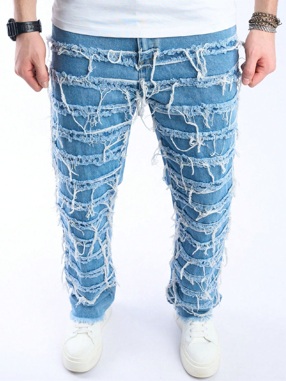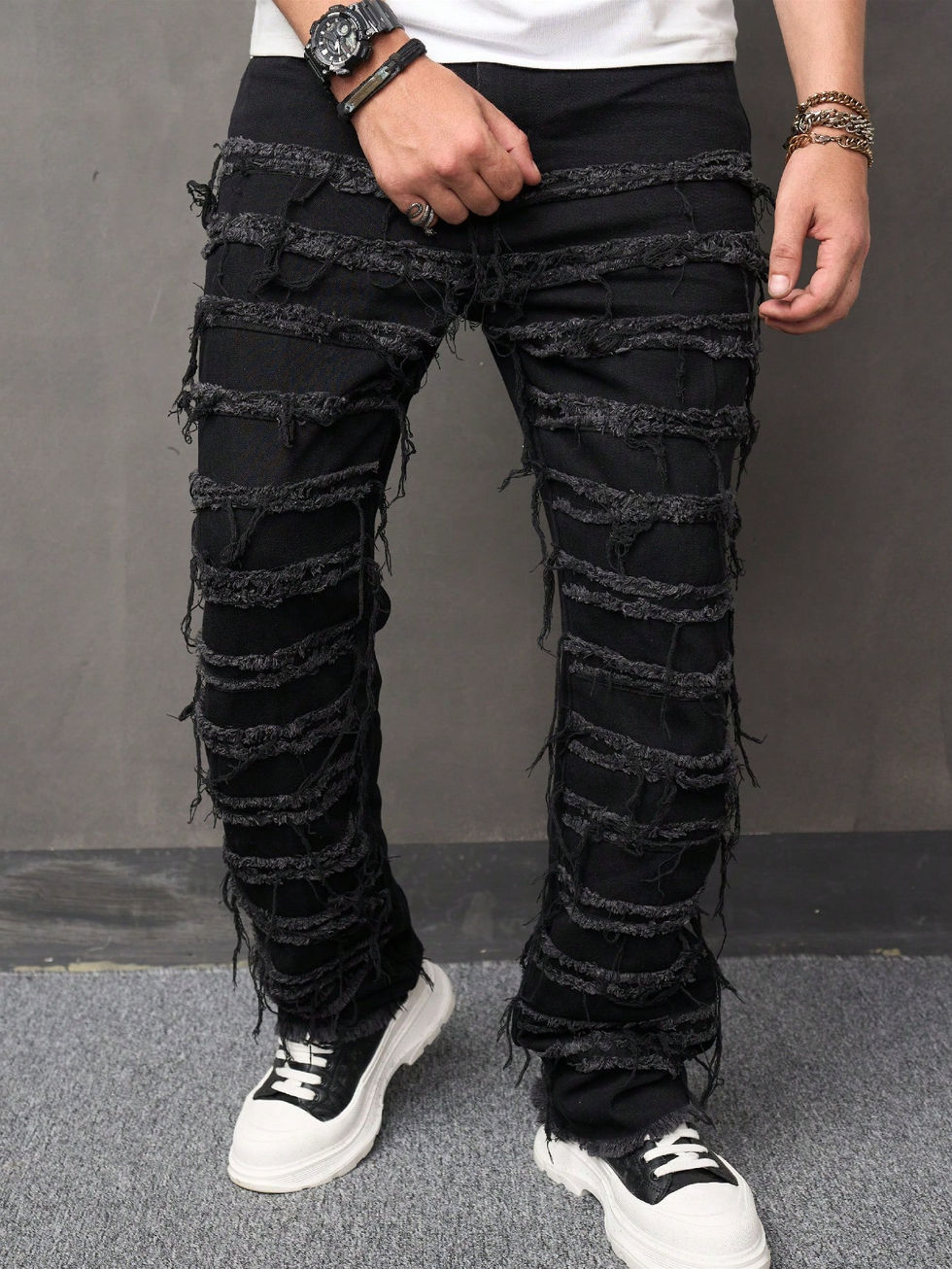 Manfinity EMRG Calça Denim Masculina Solta, Sólida, com Bolso Lateral Inclinado