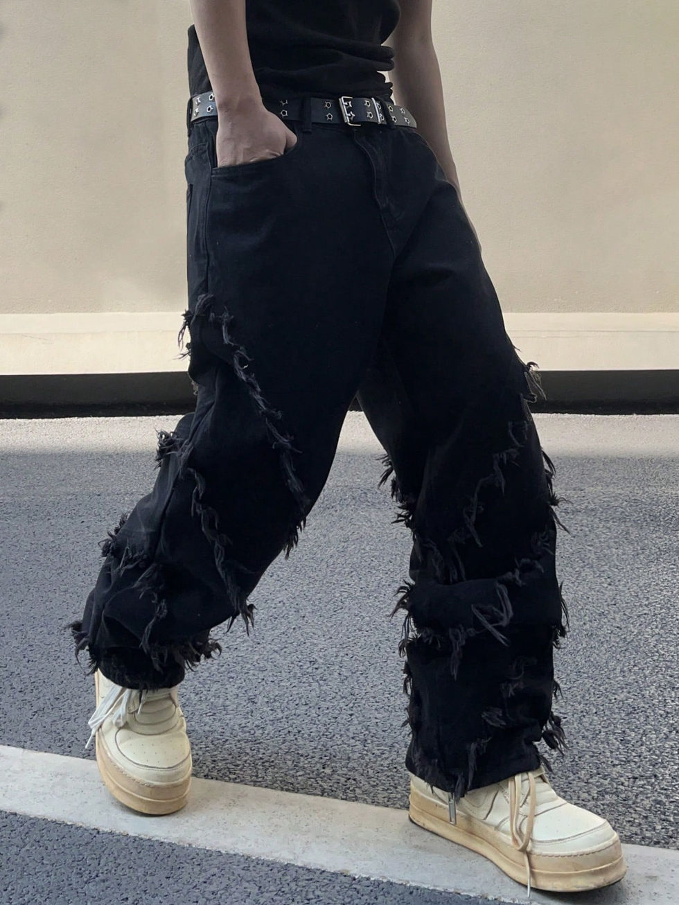 Manfinity EMRG Calça Jeans Solta Com Bordas Desfiadas E Cor Sólida Para Homens