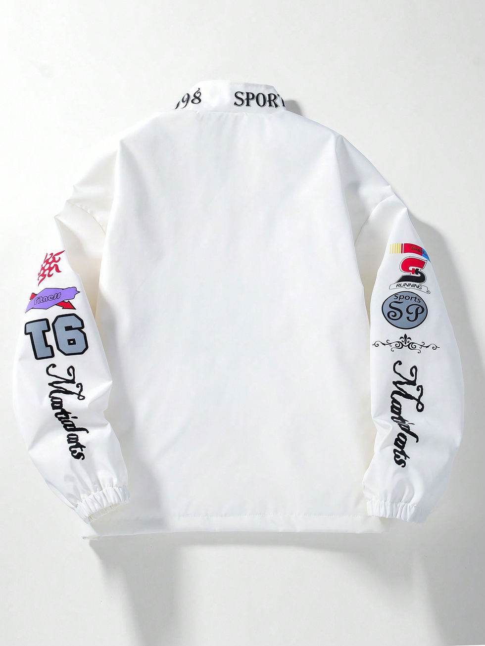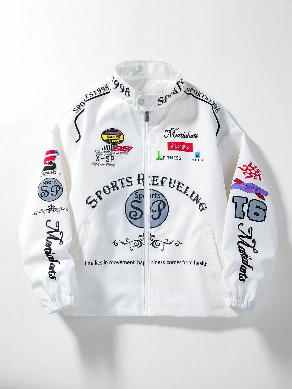 Manfinity EMRG Jaqueta Casual Masculina com Estampa de Slogan, Gola em pé