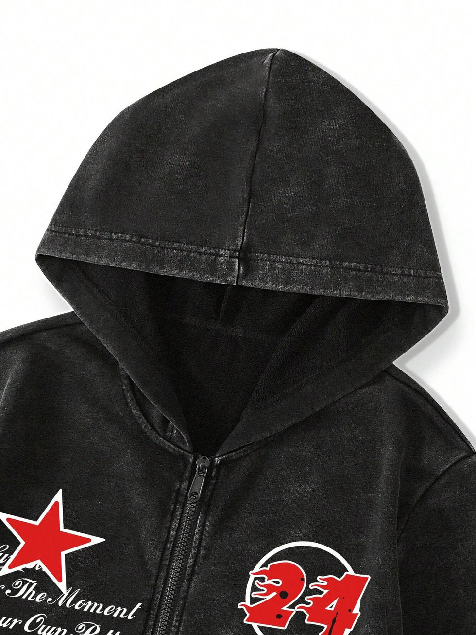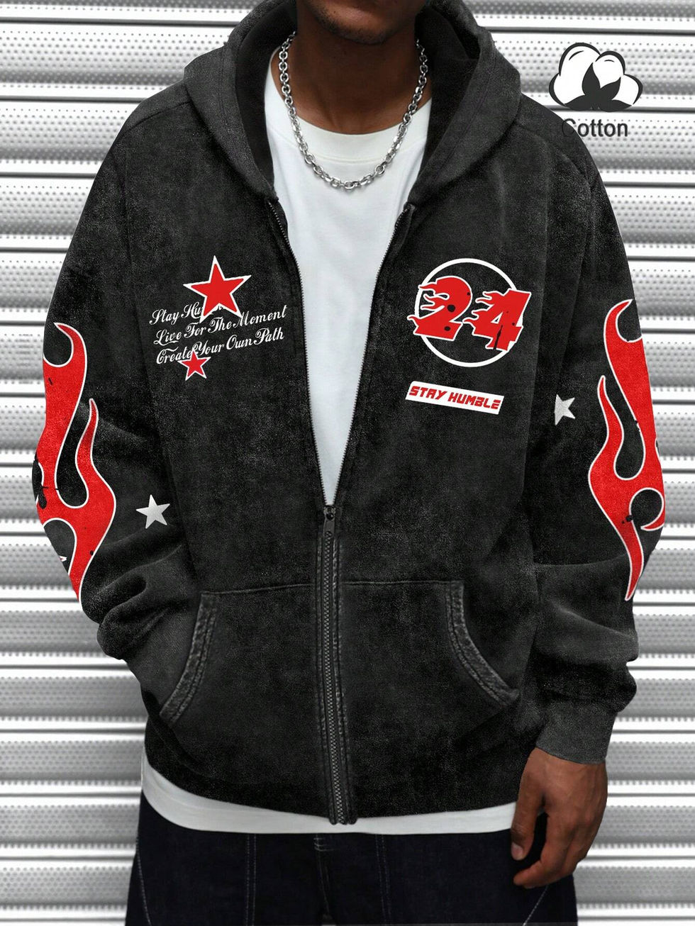 Manfinity EMRG Moletom com Capuz e Zíper com Estampa de Chamas