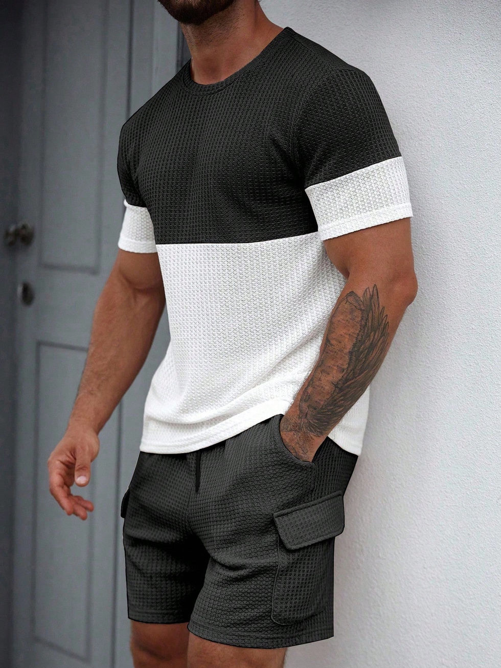 Manfinity Homme Conjunto de Camiseta e Shorts de Cor Sólida Masculino, Conjunto
