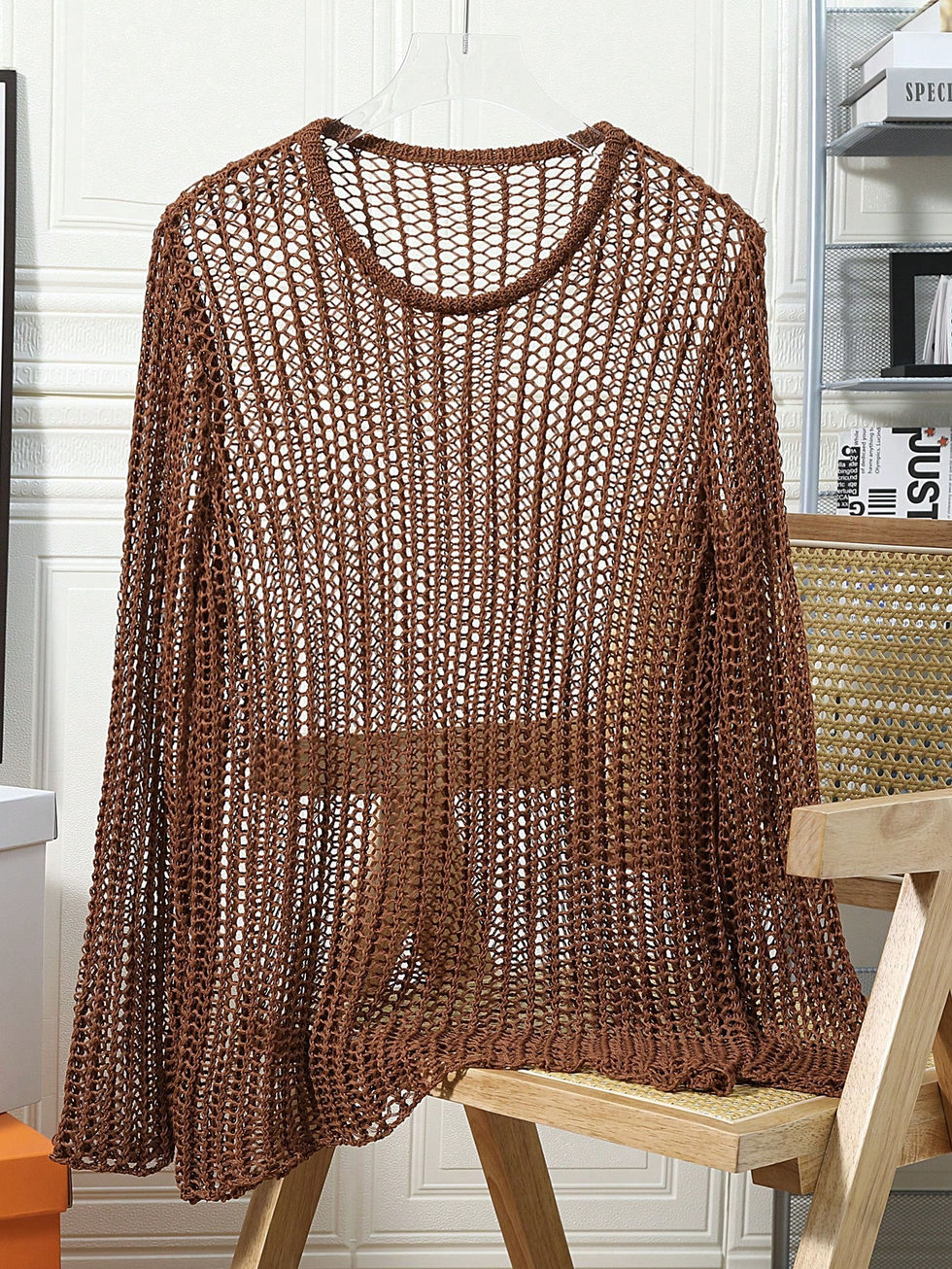 Manfinity Hypemode Suéter de Gola Careca Masculino de Cor Sólida com Recorte, C