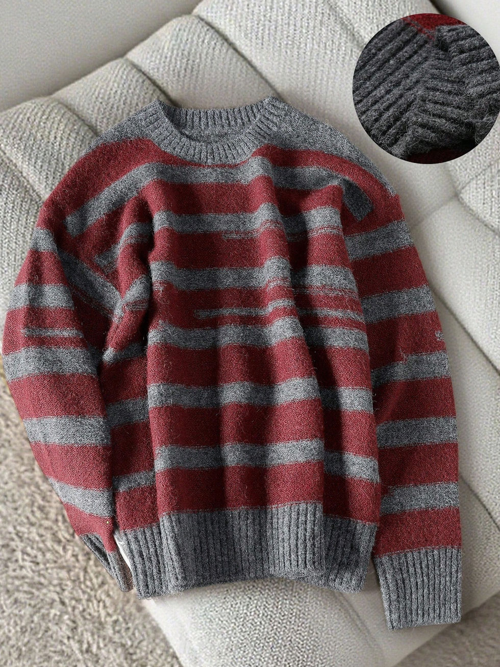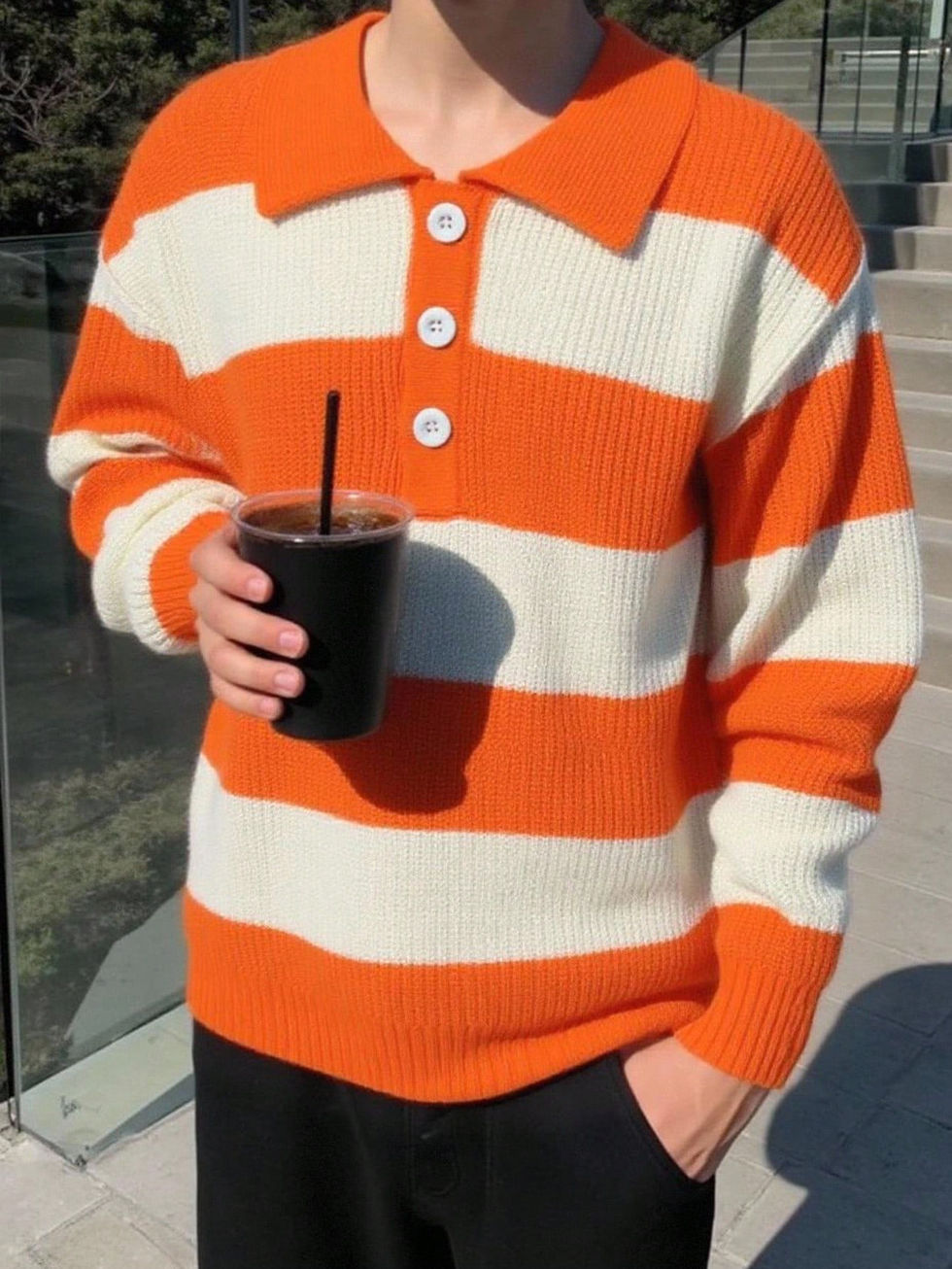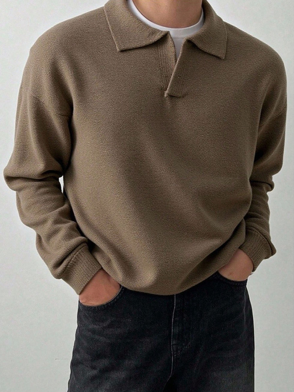 Manfinity Joysei Suéter casual de manga longa com gola polo, padrão de letra e