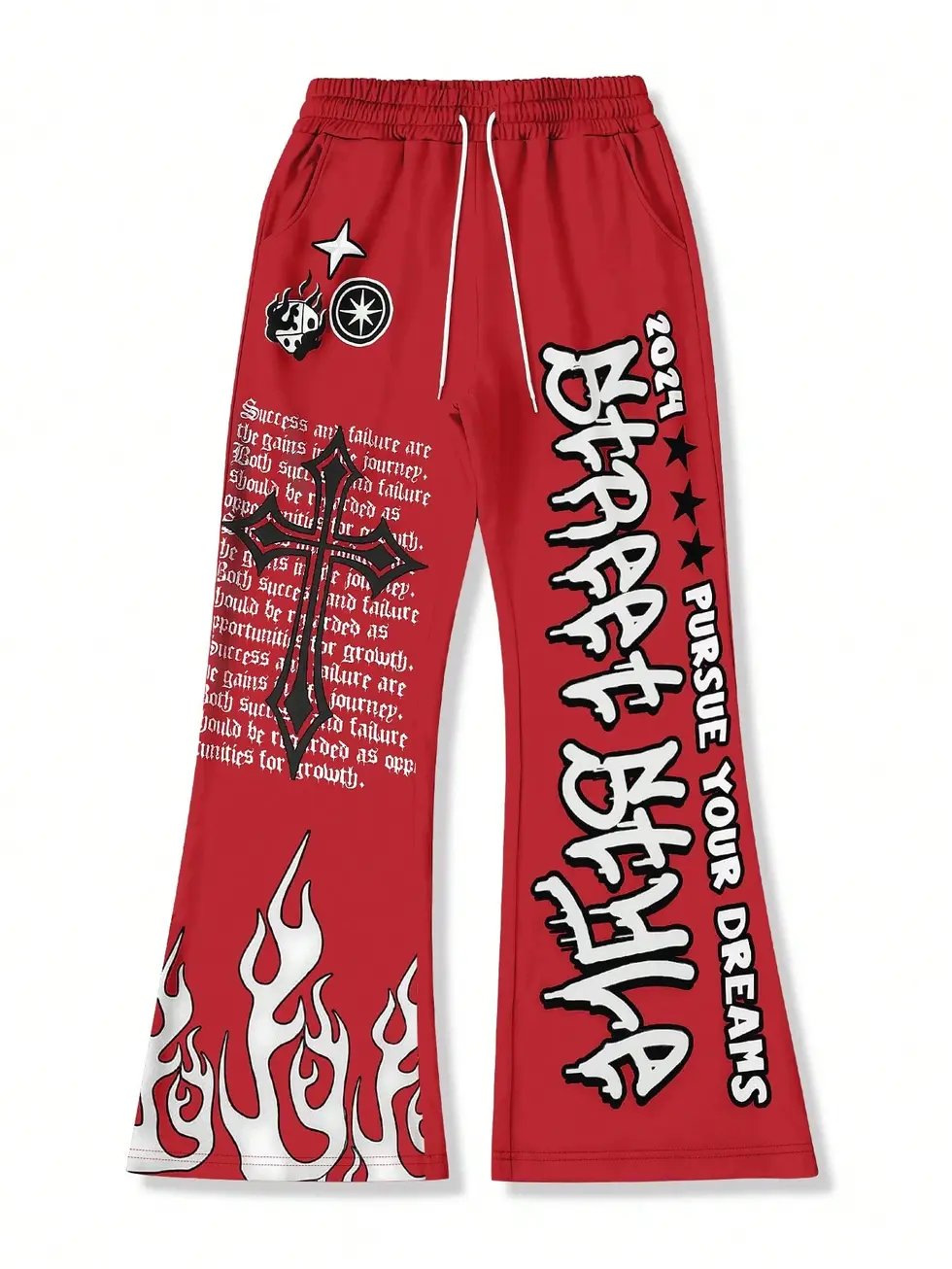 Manfinity Roghcode Calça de Moletom Casual com Bolso e Estampa de Letra com Cad