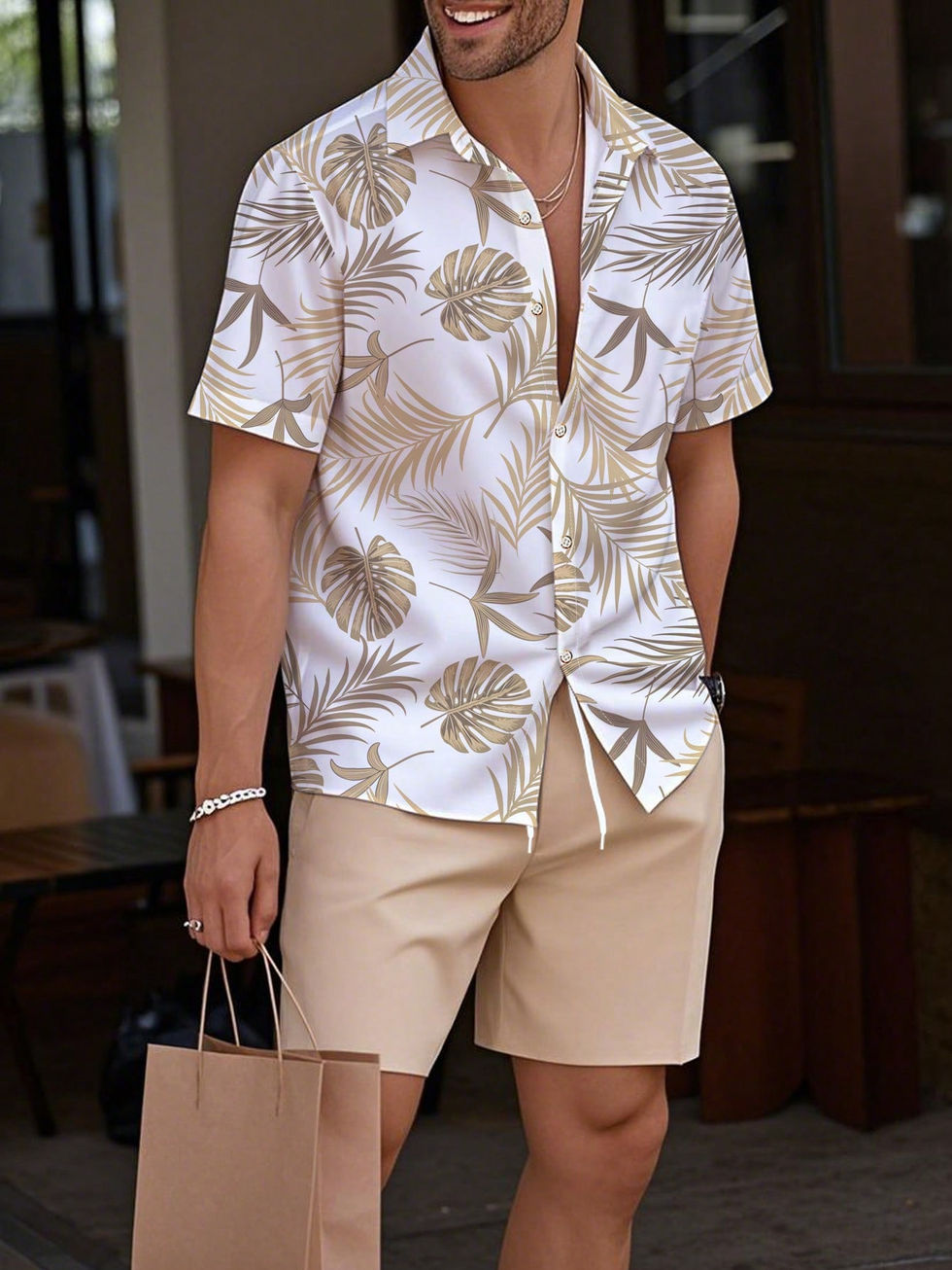 Manfinity RSRT Conjunto de Top Havaiana Casual de Botões à Frente com Manga Cur