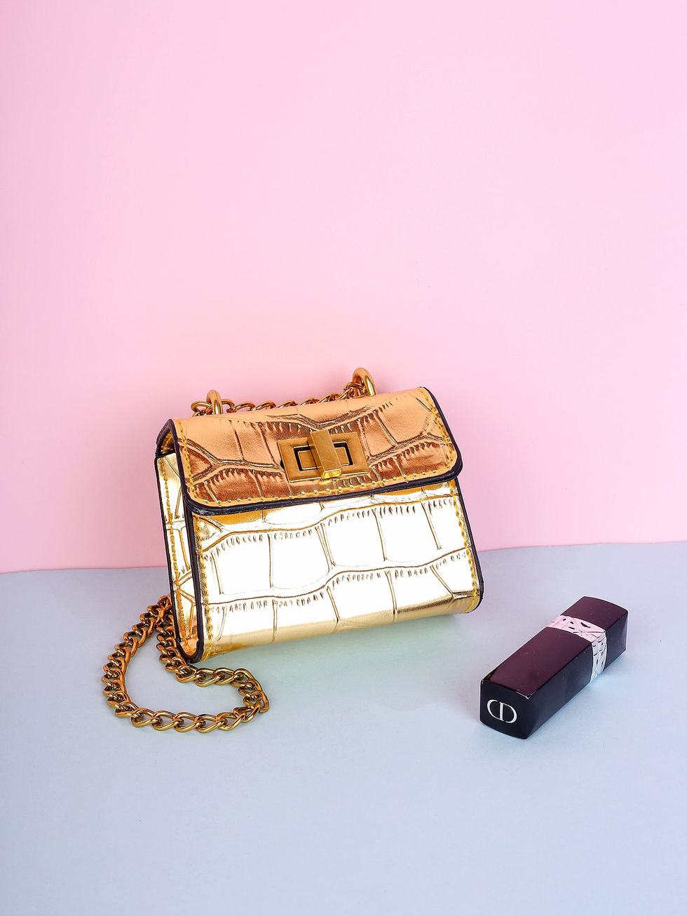 Mini Croc Metálico Saco Crossbody em Relevo Bolsa Feminina