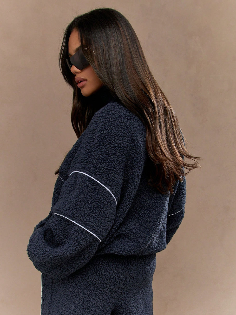 MISSGUIDED Jaqueta de Fleece com Gola Alta e Zíper Longo com Mangas, Ribetes Co