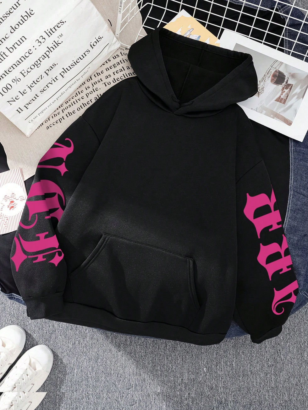 Moletom Casual Estampado com Letra, Modelo Folgado, para Mulheres Plus Size