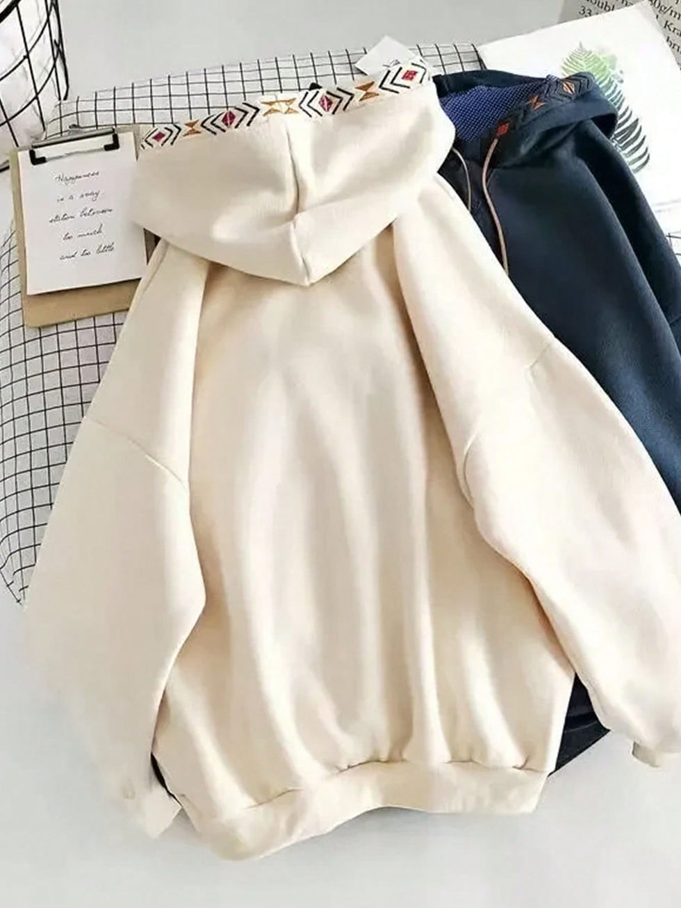 Moletom com Capuz e Cordão Bordado Geométrico Plus Size