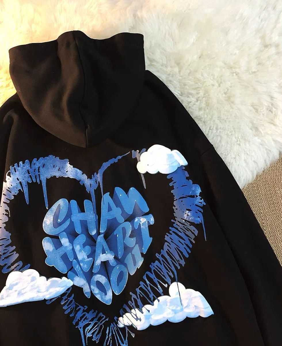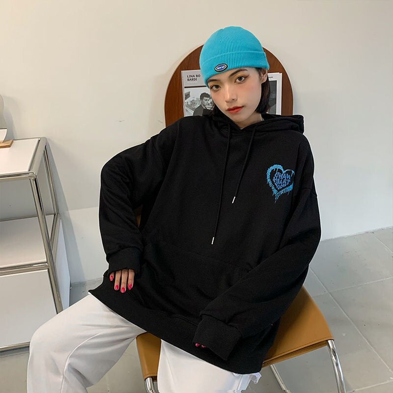 moletom com capuz Y2k com zíper 2021 feminino hip hop streetwear grafite coração