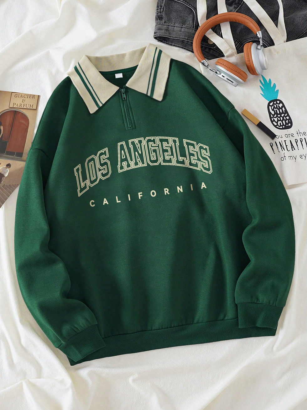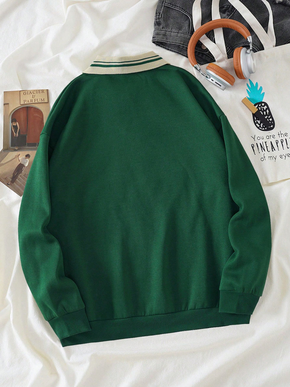 Moletom com Gráfico de Letra Plus, Colarinho Contrastante, Forro Térmico, Inver