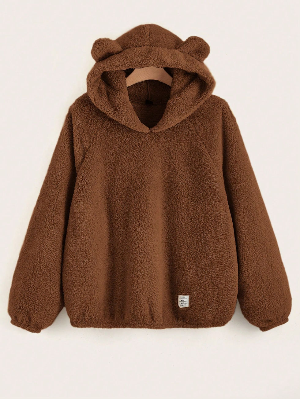 Moletom Teddy com Design de Orelhas 3D e Manga Raglan, Para o Inverno