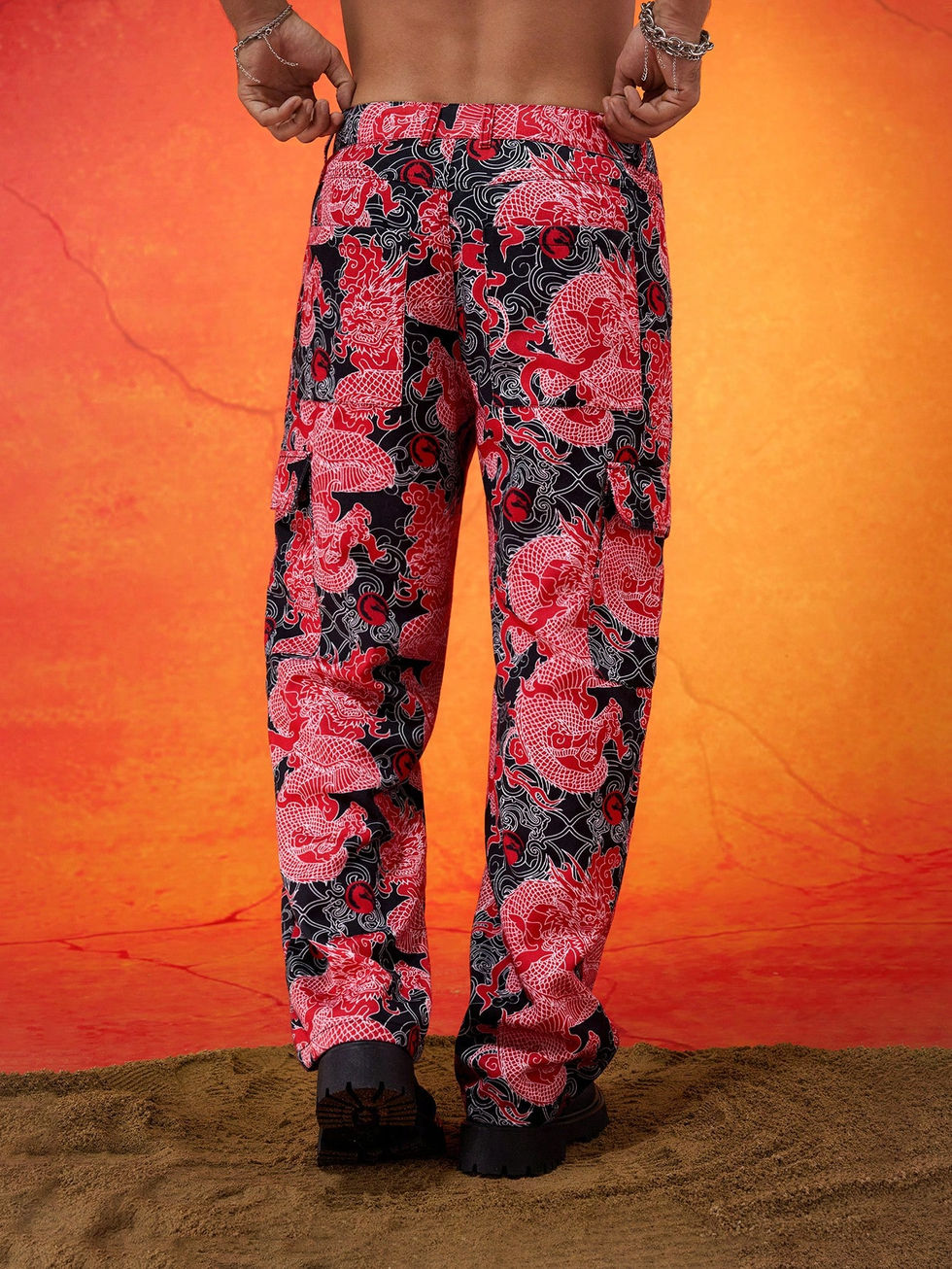 Mortal Kombat Calça de Carga Casual Solta Masculina, Clássica, Estampada de Dra