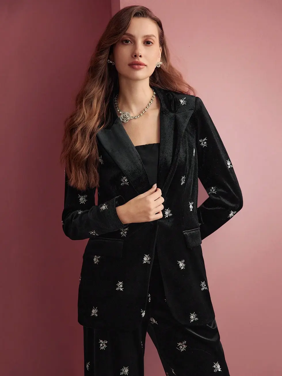 MOTF PREMIUM BLAZER ESTRUTURADO DE VELUDO COM UM ÚNICO BOTÃO