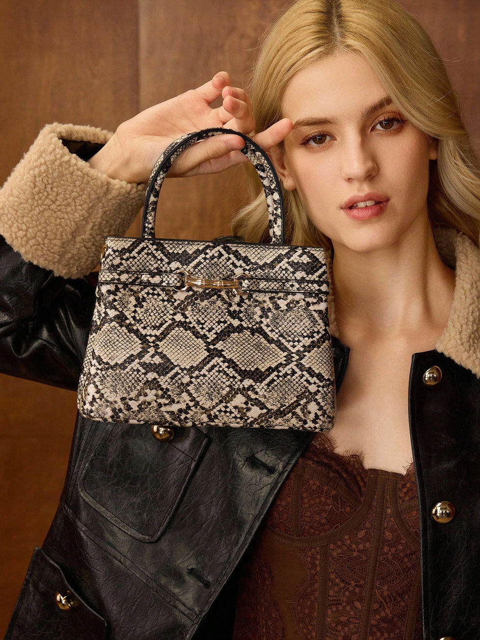 MOTF PREMIUM Bolsa com Alça Superior Decorativa Embossed Metálica