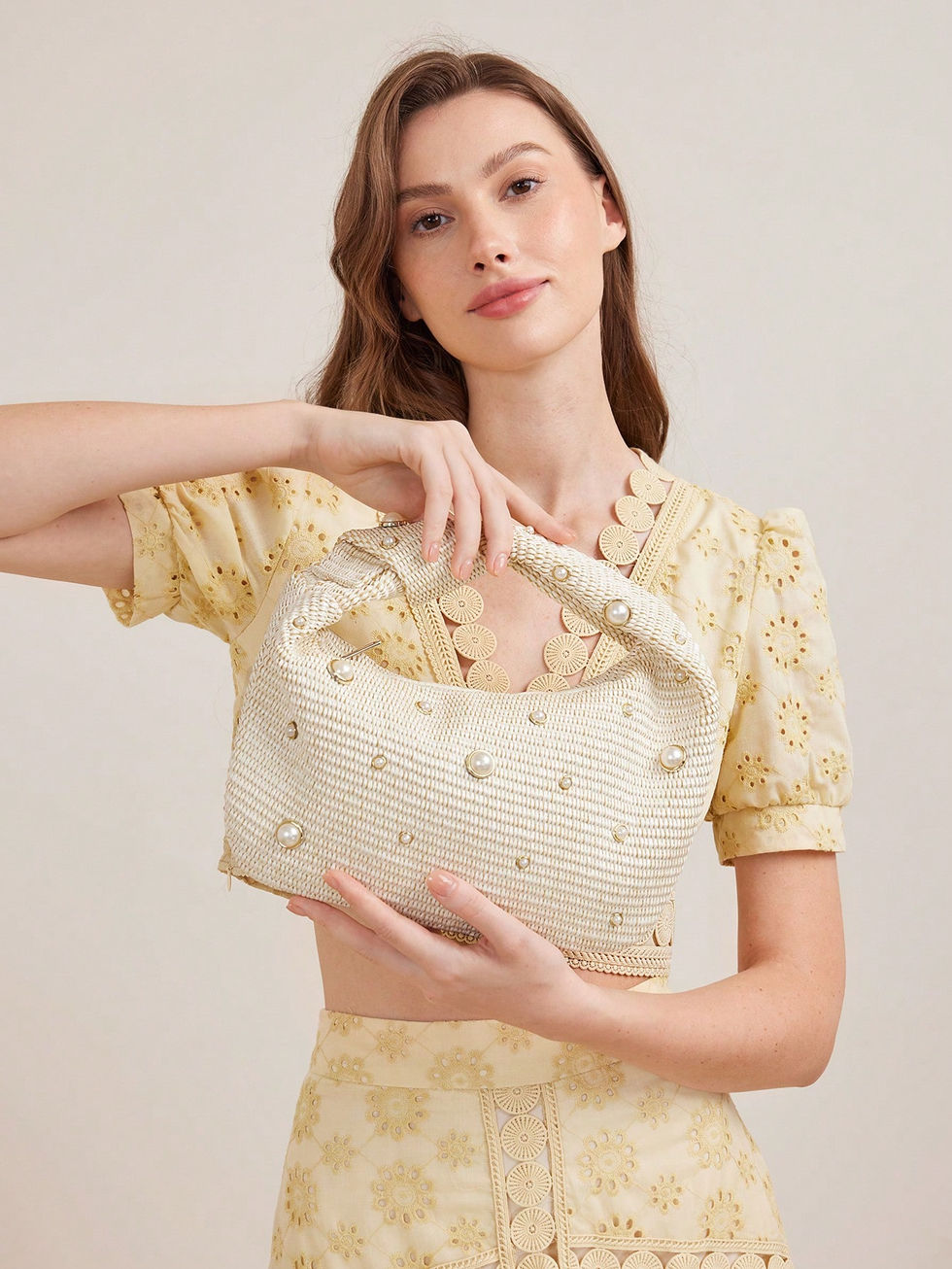 MOTF PREMIUM BOLSA COM ALÇA SUPERIOR ORNAMENTADA COM PÉROLAS FALSAS