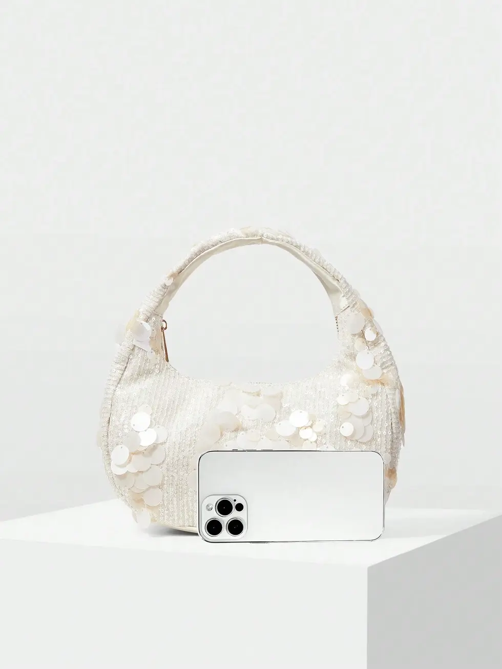 MOTF PREMIUM Bolsa de Alça Superior com Zíper e Lantejoulas, Moda Feminina, Ade
