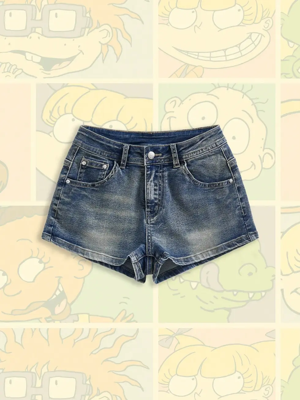 Nick 90's X ROMWE Shorts Denim Casuais Femininos com Decoração de Bolso de Pers