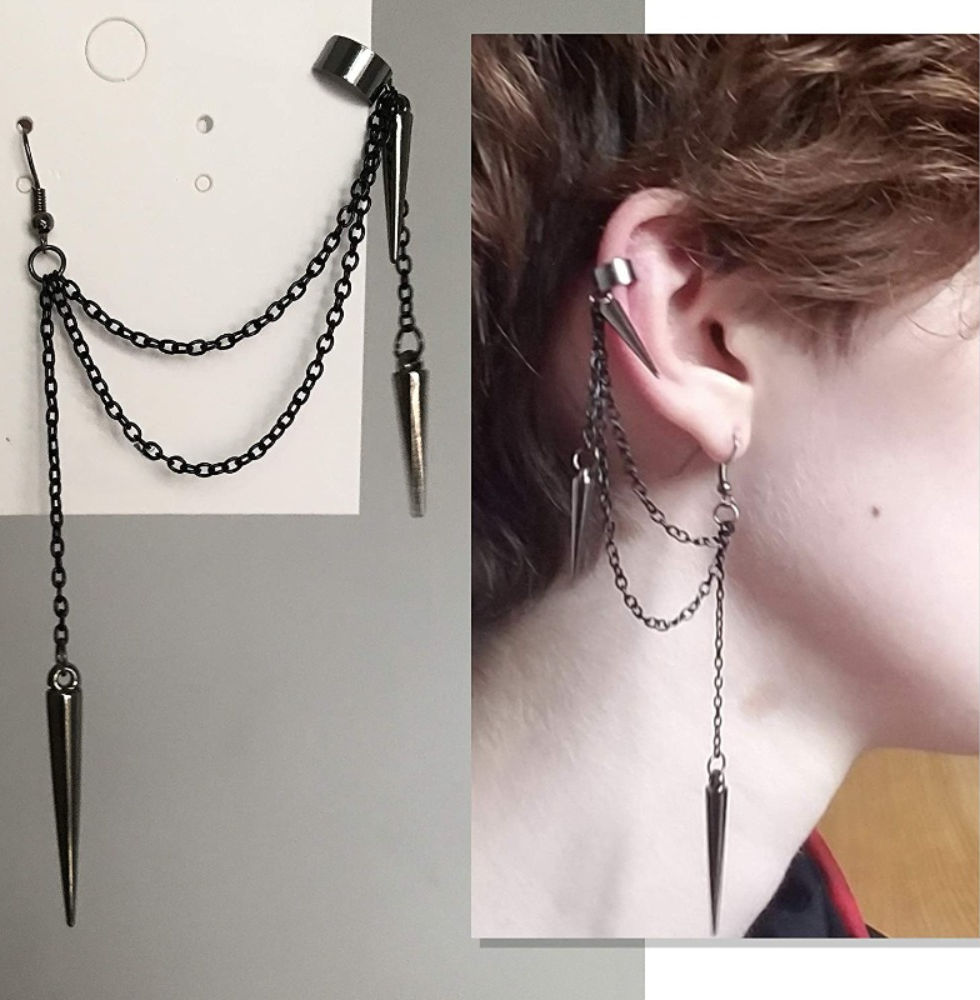 Nova moda criativa tendência masculina retro preto borla longa corrente punk br