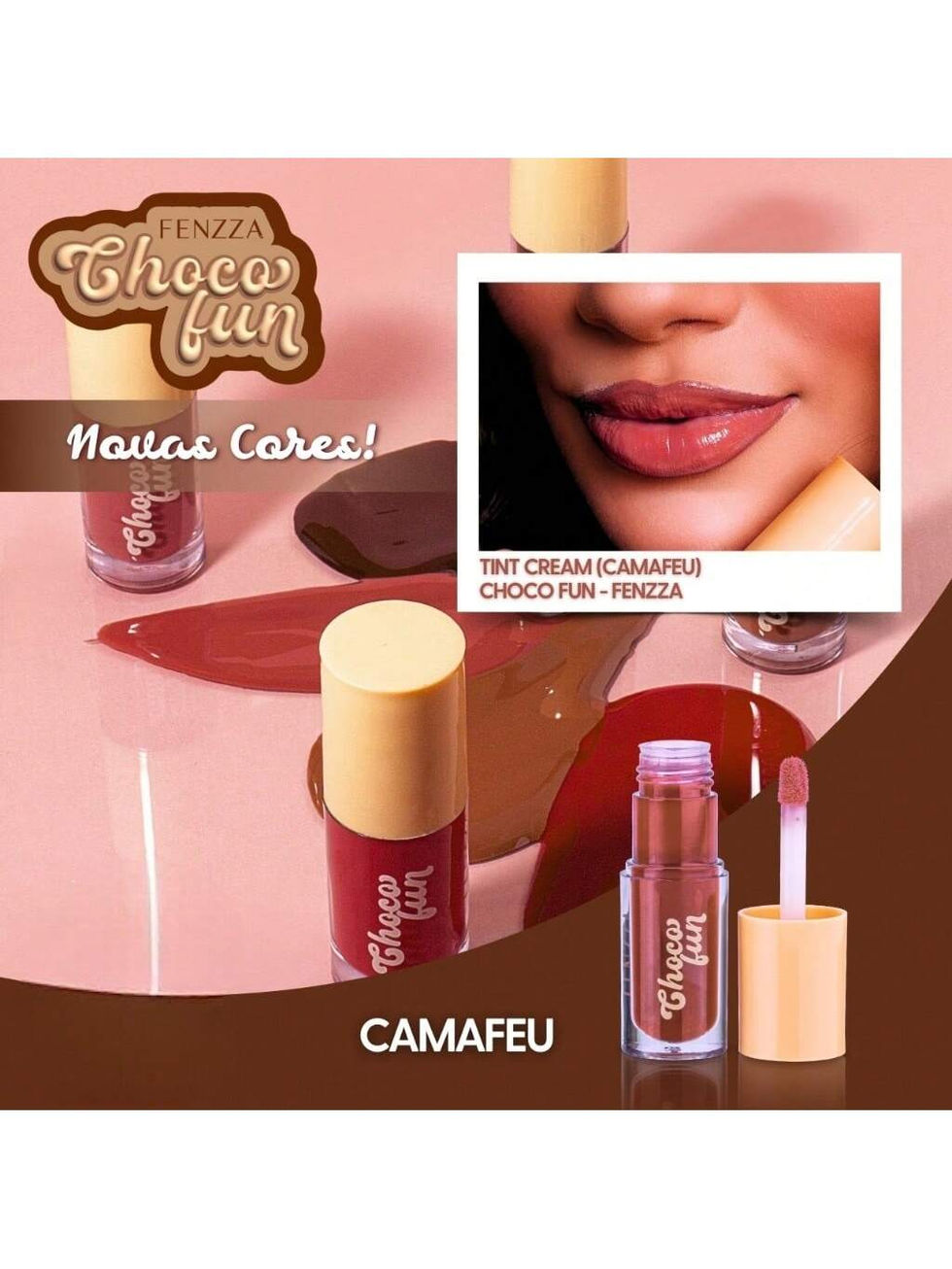NOVO 2024 Gloss Lábial Tint Cream Choco Fun Fenzza LANÇAMENTO new Festa Junina