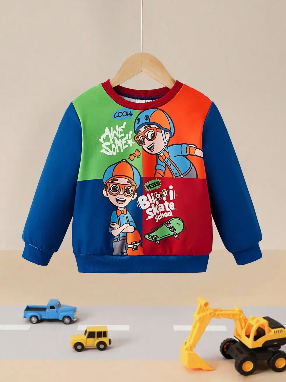 NovoBlippi X Personagem de Desenho Animado de Menino Jovem, Moletom de Gola Car