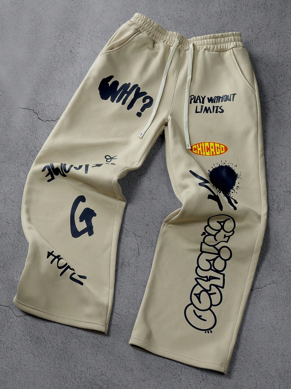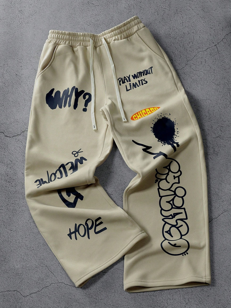 PAVTROS Calça de Moletom Masculina Casual com Estampa de Letra e Cordão na Cint