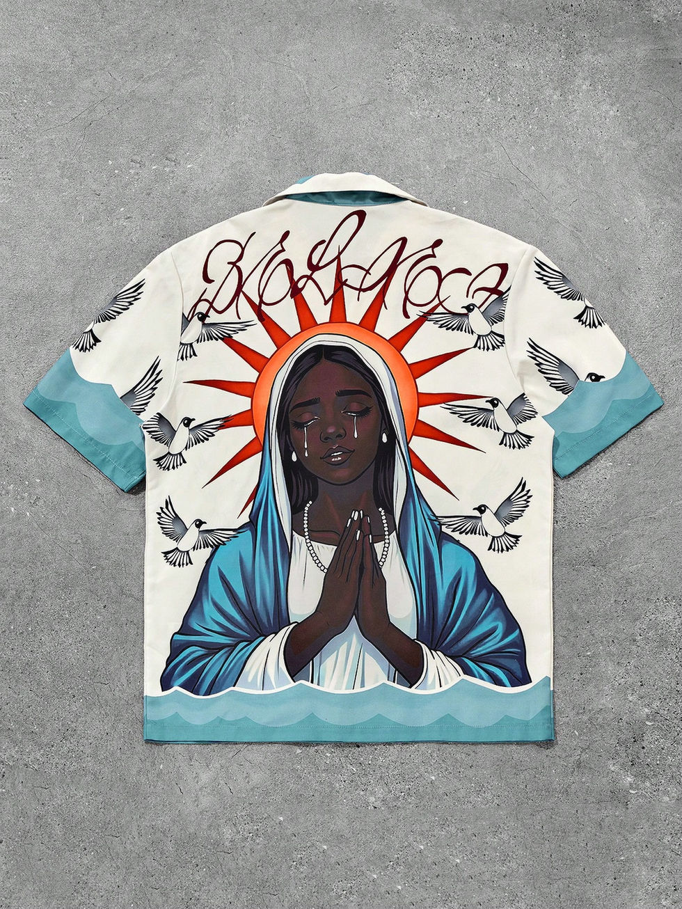 PAVTROS Camisa Casual de Manga Curta com Botões na Frente e Estampa Manfinity E
