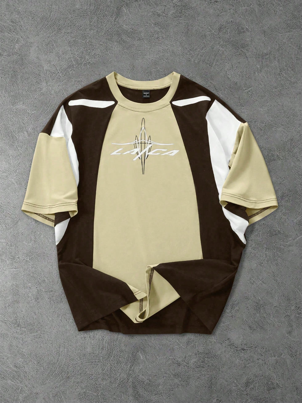 PAVTROS Camiseta Masculina Casual de Manga Curta com Estampa de Letra em Bloco