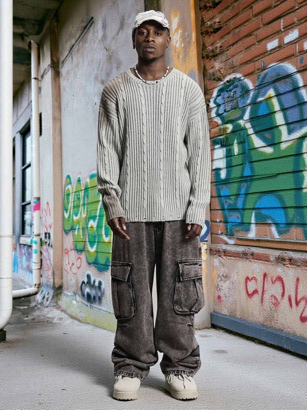 PAVTROS Suéter Casual Solto de Manga Comprida com Decote Careca e Ombros Caídos