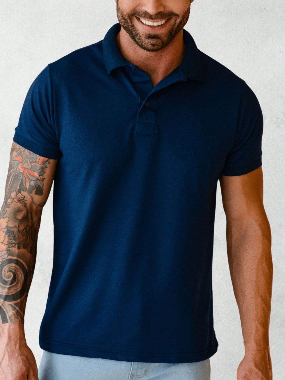 Polo Masculina Unissex Slim Fit Camiseta Elegante Lisa Casual Confortável Algod