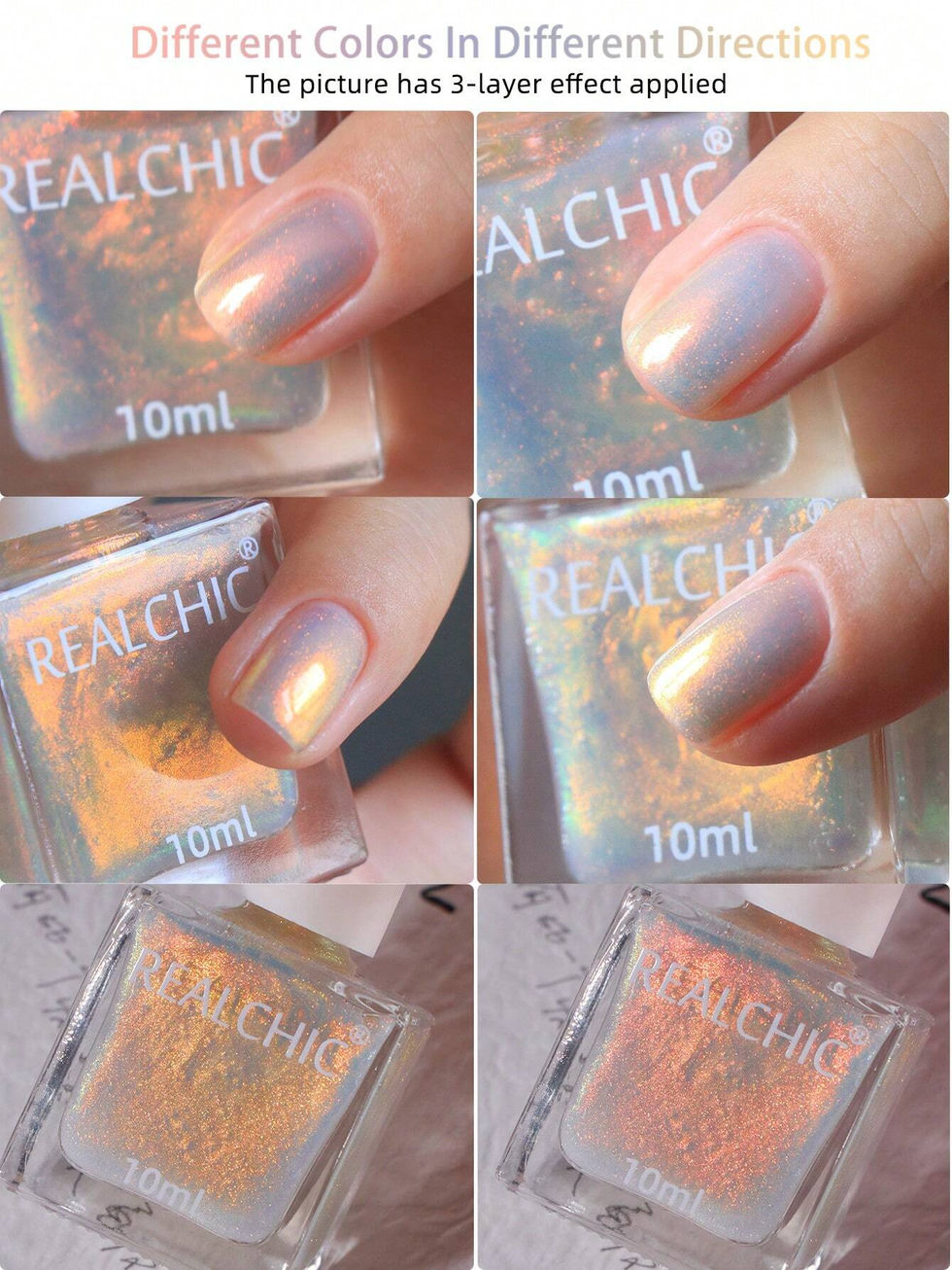 REALCHIC 10ml/Peça Esmalte de Unha à Base de Água com Glitter Camaleônico, Seca