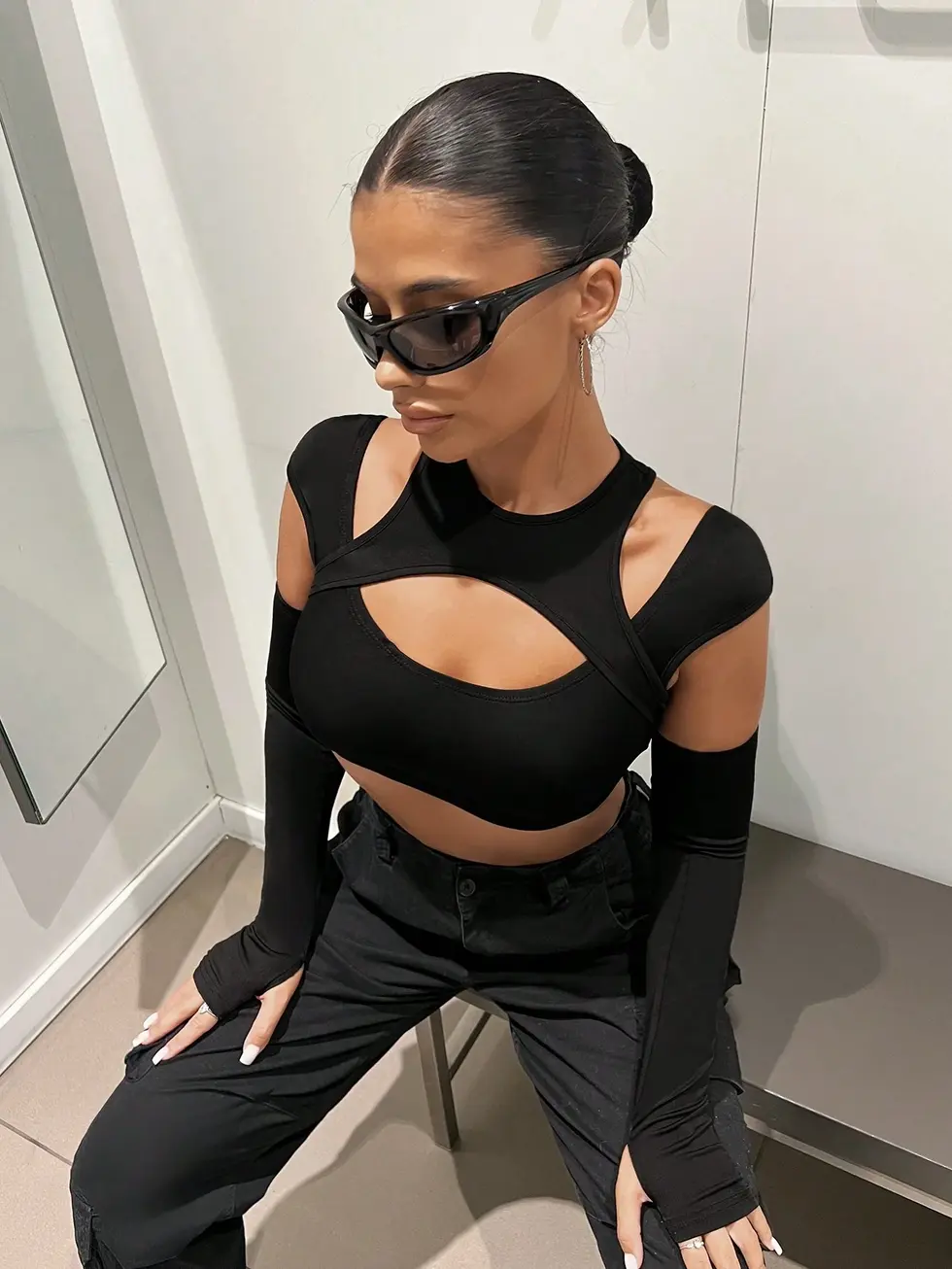 Regata Cropped com Recorte na Frente e Mangas