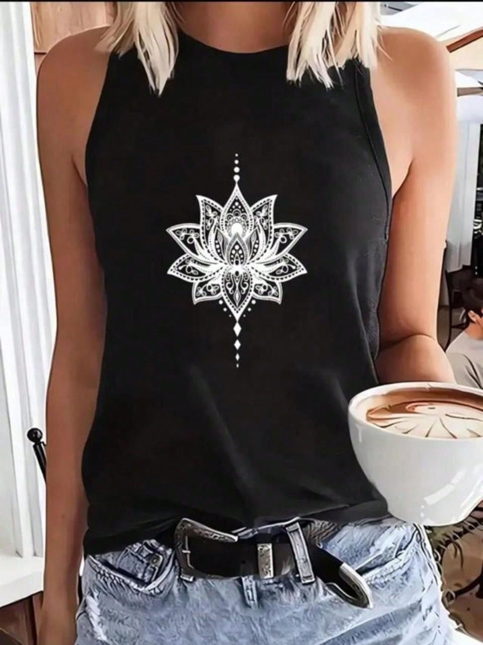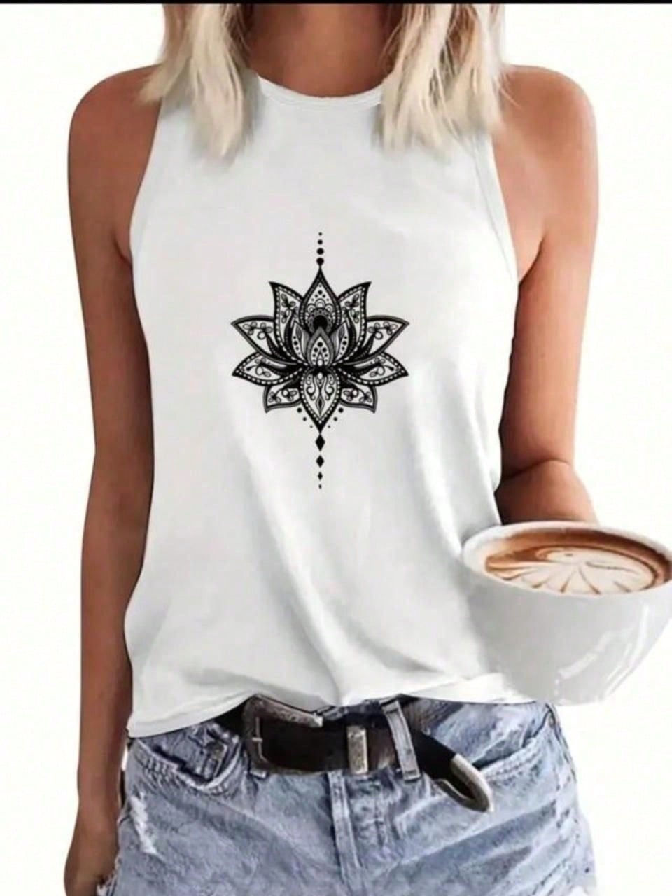 Regata Feminina Flor Lotus Blusa Algodão Premium Estampada Moda Academia Caminh