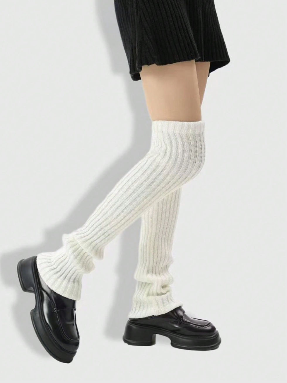 ROMWE Anime Perneiras Caneladas para Mulheres, Cor Sólida, Quente para Outono/I