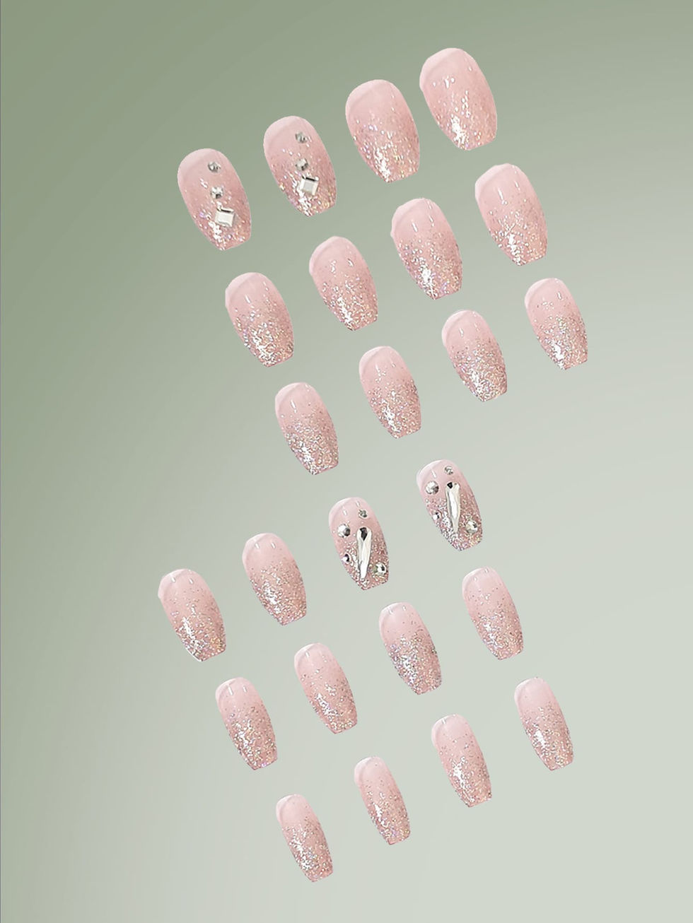 ROMWE Fairycore 24 peças Comprido Caixão Decoração de strass Unha Falsa & 1 fol