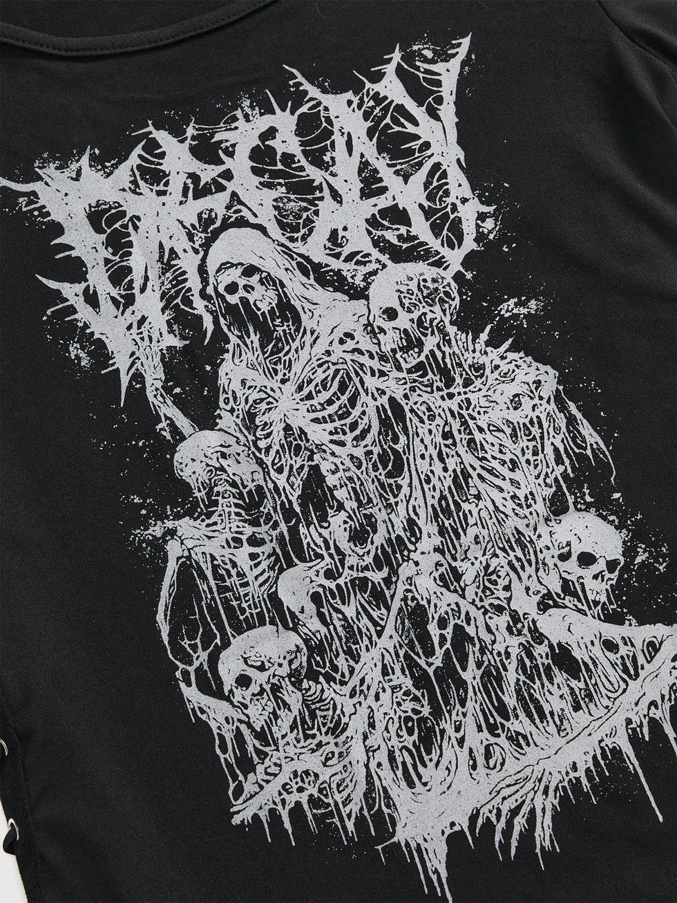 ROMWE Grunge Punk Camiseta Feminina de Manga Curta com Estampa de Esqueleto Gót